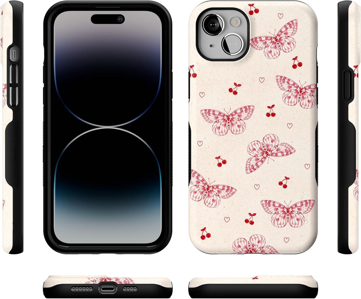 Casely iPhone 14 Plus Case | Coquette Girlie | Pastel Bows | Bold Protective Design | Compatible with MagSafe(Heart Flutters | Butterfly)