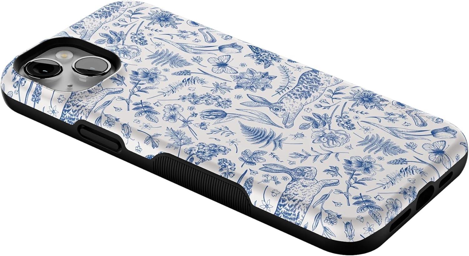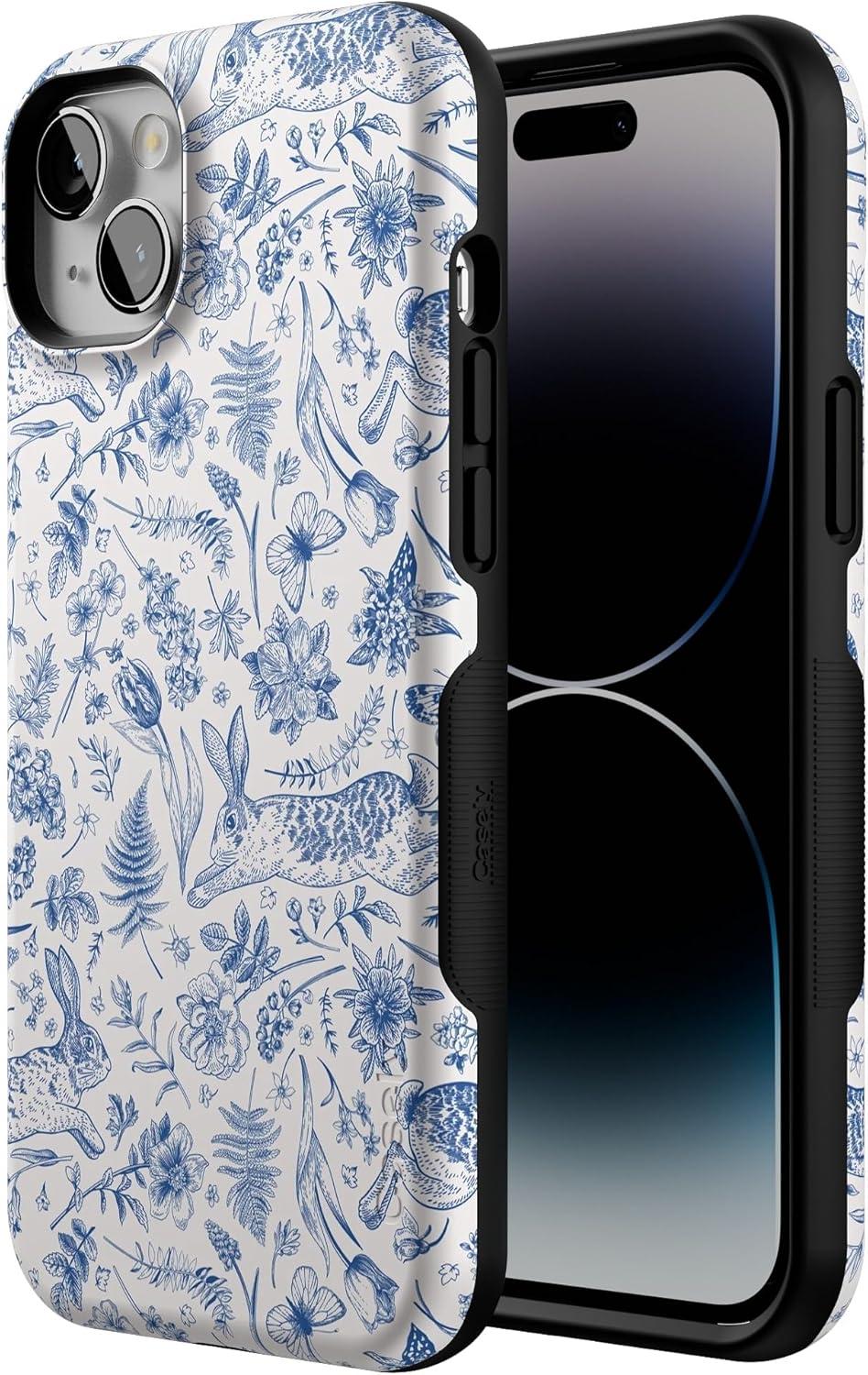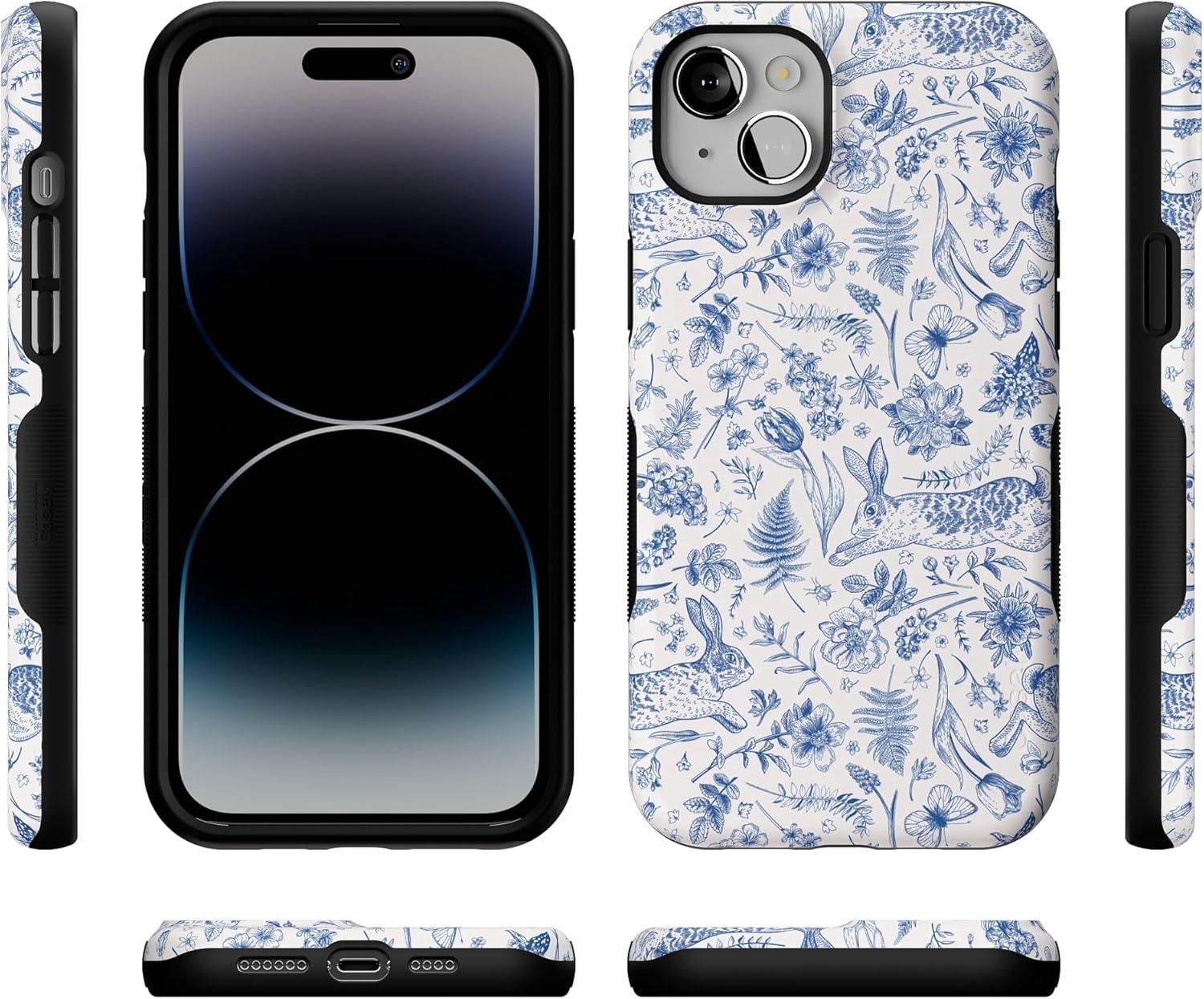 Casely iPhone 14 Plus Case | Coquette Girlie | Pastel Bows | Bold Protective Design | Compatible with MagSafe(Hop & Bloom | Bunny Toile)