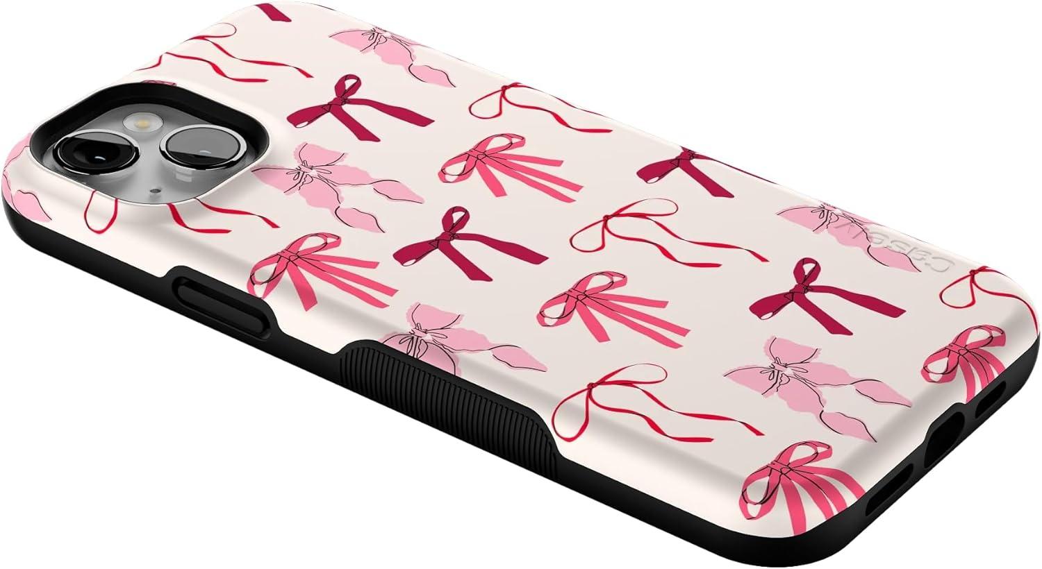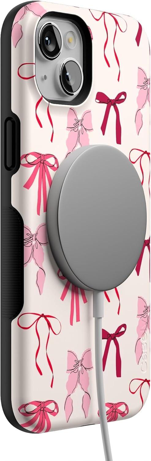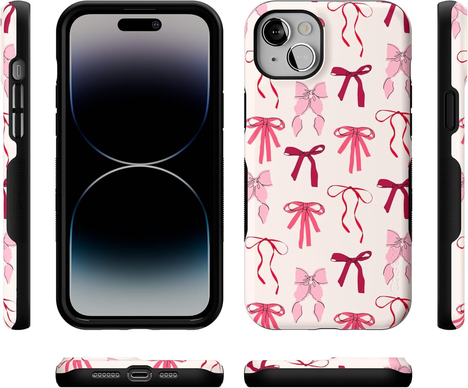 Casely iPhone 14 Plus Case | Coquette Girlie | Pastel Bows | Bold Protective Design | Compatible with MagSafe(Lover Girlie | Pink Bows)