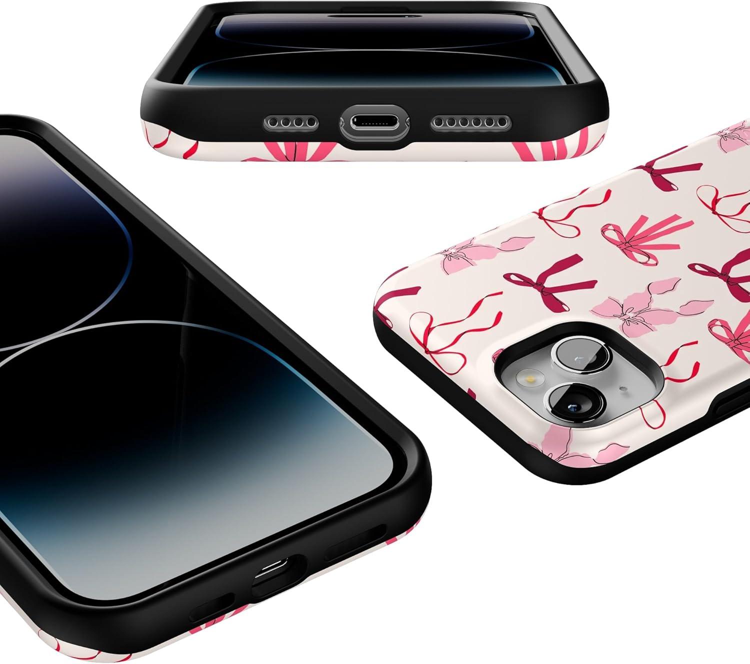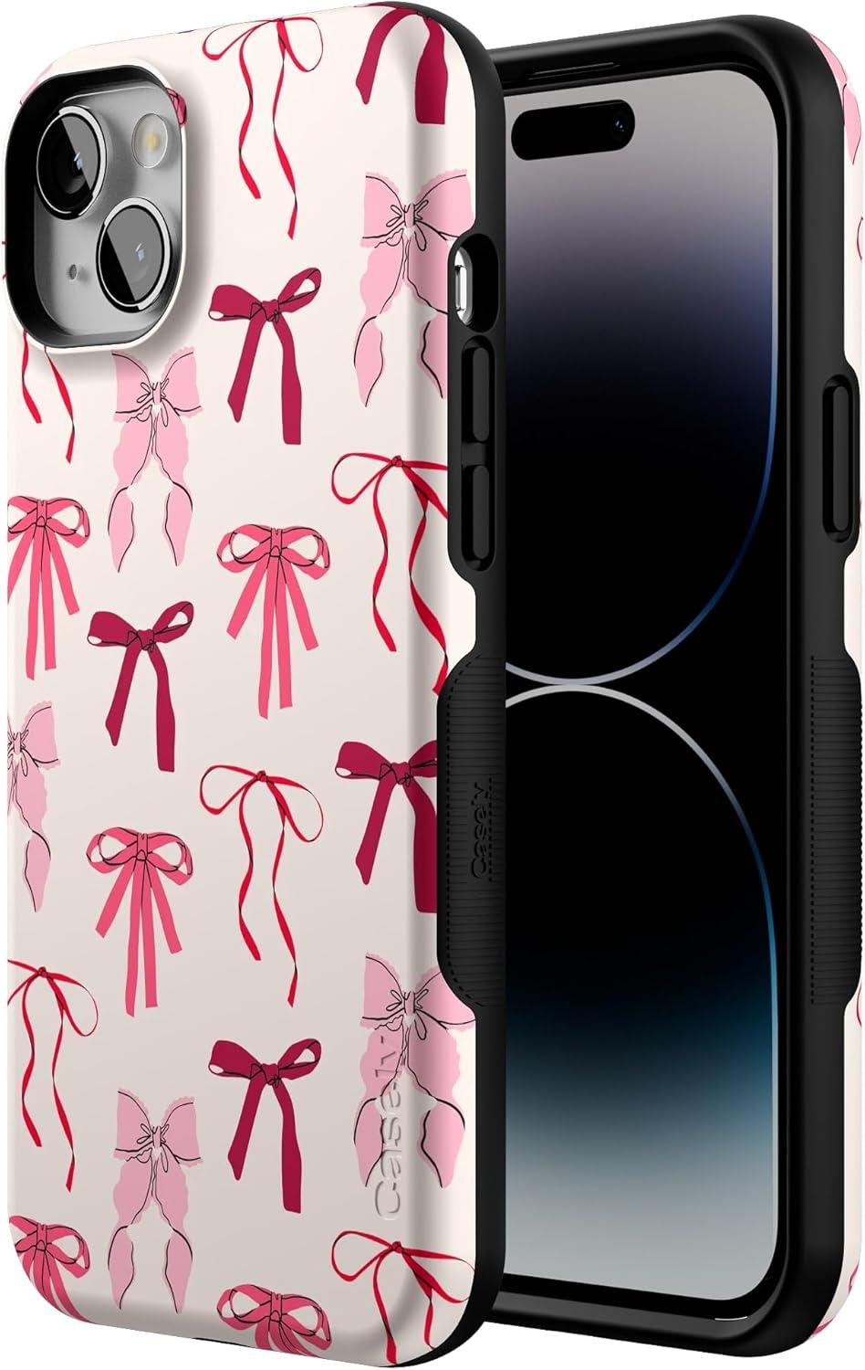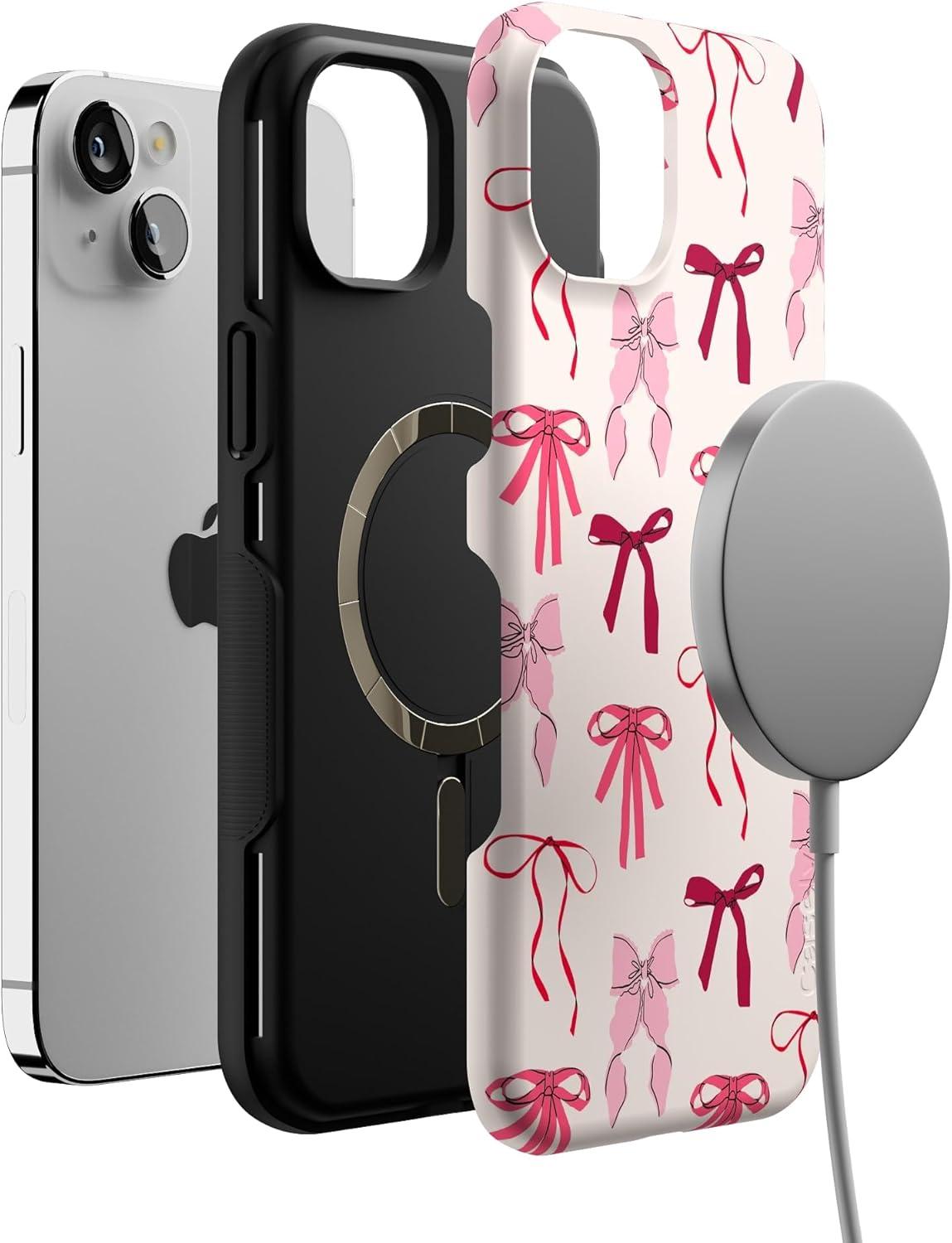 Casely iPhone 14 Plus Case | Coquette Girlie | Pastel Bows | Bold Protective Design | Compatible with MagSafe(Lover Girlie | Pink Bows)