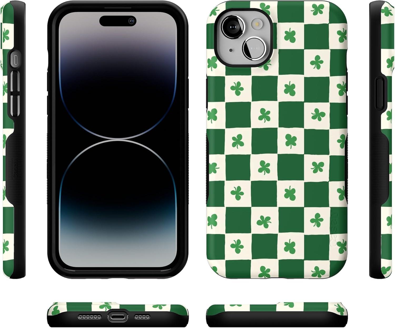 Casely iPhone 14 Plus Case | Coquette Girlie | Pastel Bows | Bold Protective Design | Compatible with MagSafe(Lucky You | Shamrock)