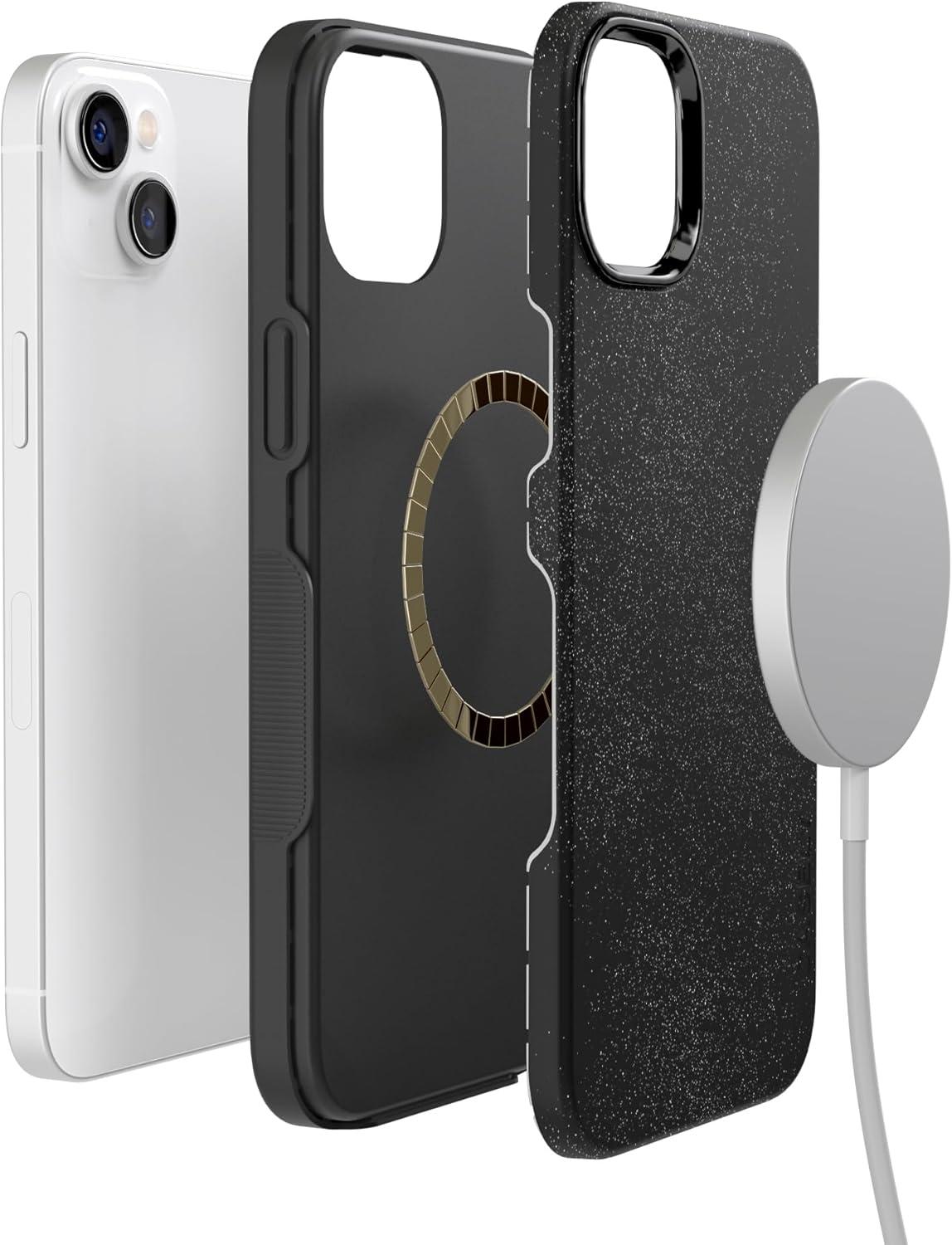 Casely iPhone 14 Plus Case | Coquette Girlie | Pastel Bows | Bold Protective Design | Compatible with MagSafe(Midnight Onyx | Black Shimmer)