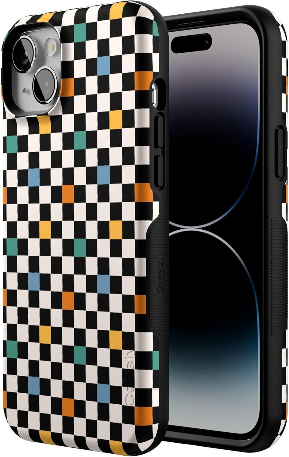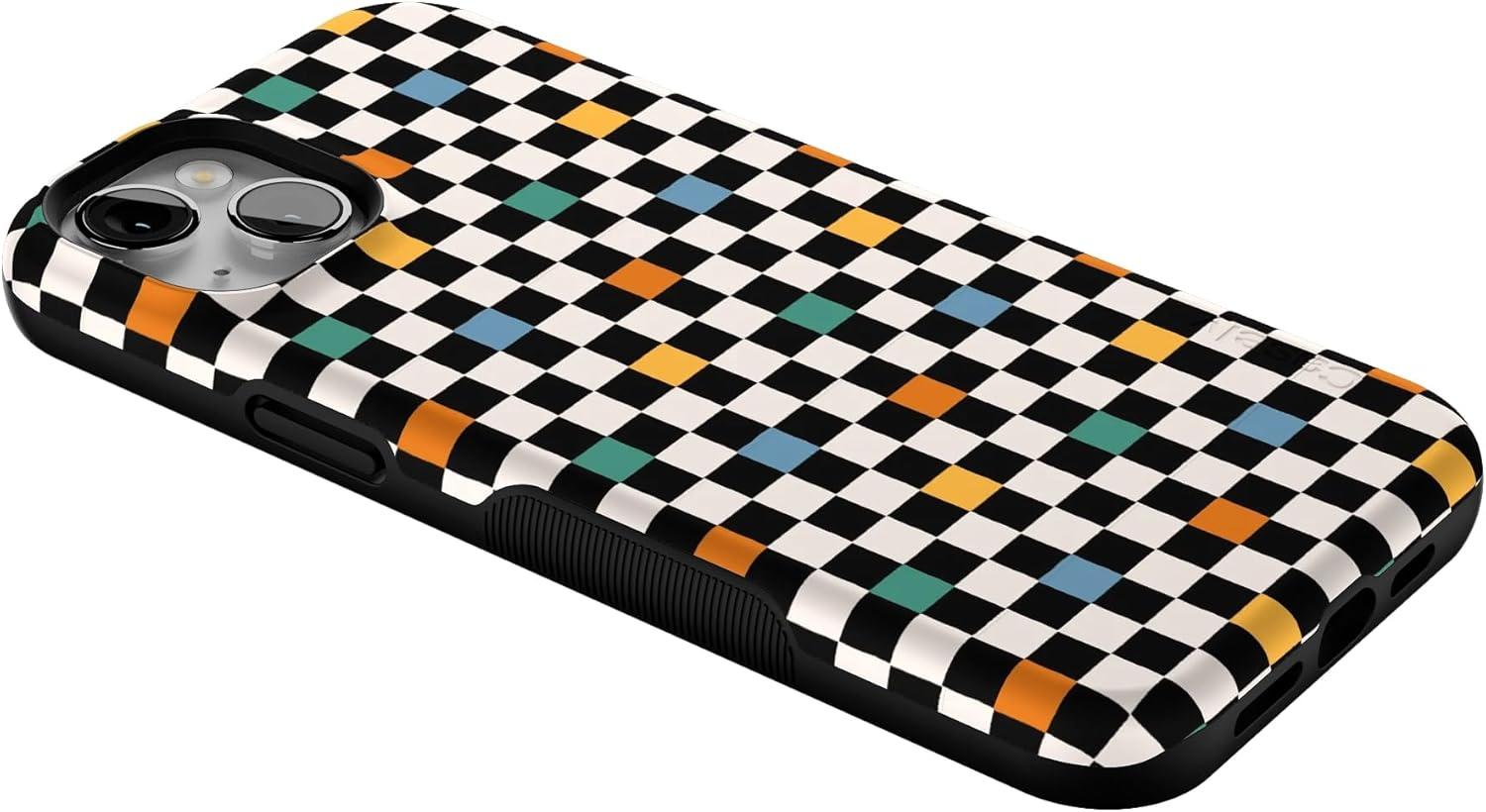 Casely iPhone 14 Plus Case | Coquette Girlie | Pastel Bows | Bold Protective Design | Compatible with MagSafe(Old Skool | Retro Checkerboard)