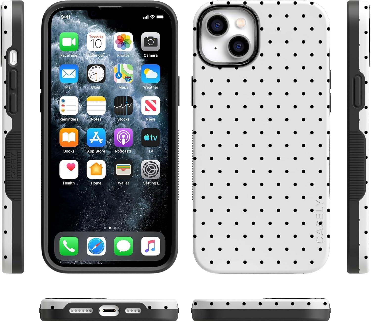 Casely iPhone 14 Plus Case | Coquette Girlie | Pastel Bows | Bold Protective Design | Compatible with MagSafe(On the Dot | White Polka Dot)