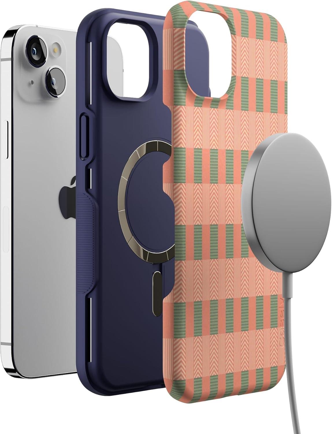 Casely iPhone 14 Plus Case | Coquette Girlie | Pastel Bows | Bold Protective Design | Compatible with MagSafe(Palm Beach | Grand Cabana)