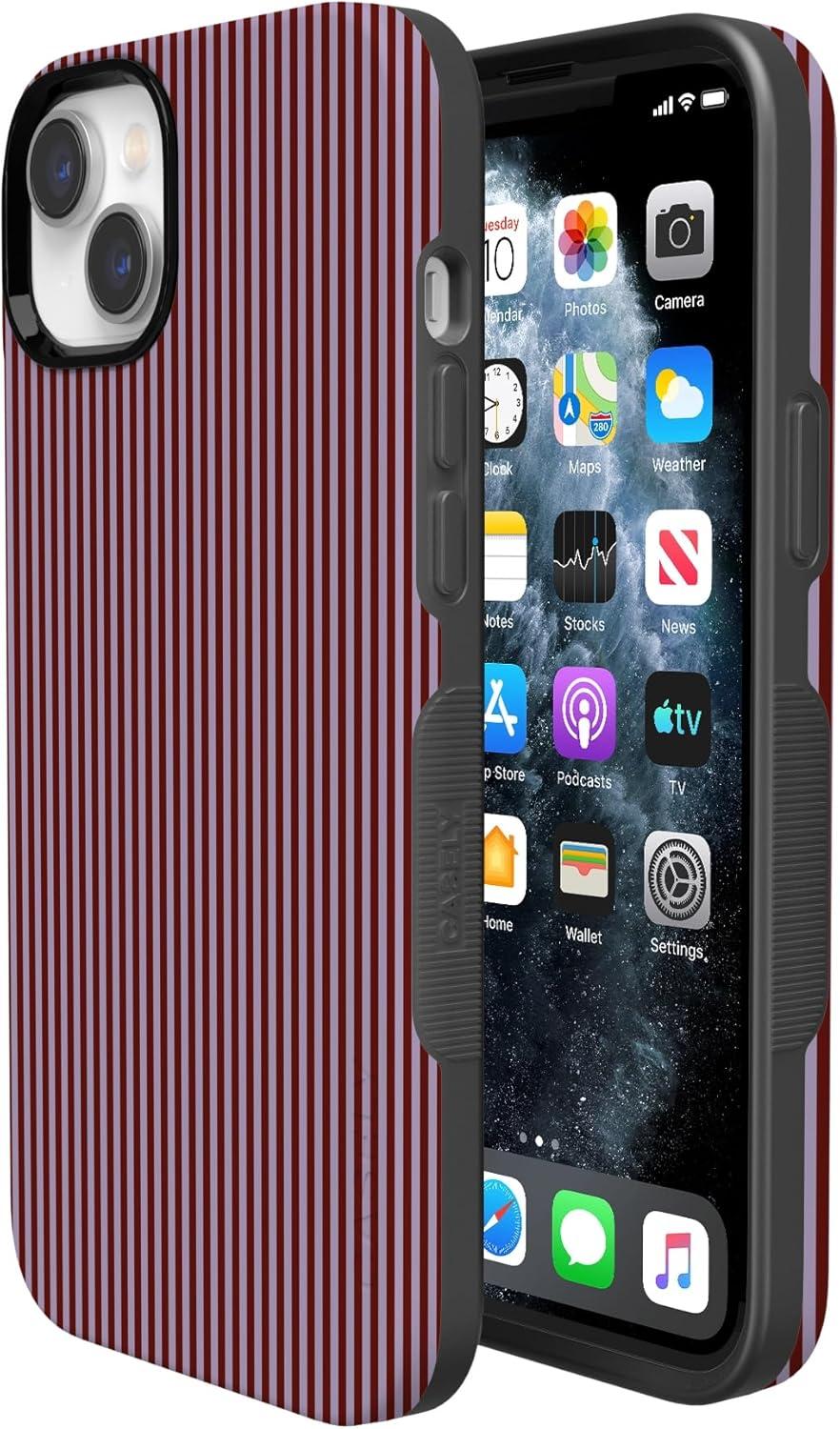 Casely iPhone 14 Plus Case | Coquette Girlie | Pastel Bows | Bold Protective Design | Compatible with MagSafe(Stripes and the City | Tiny Pinstripe)