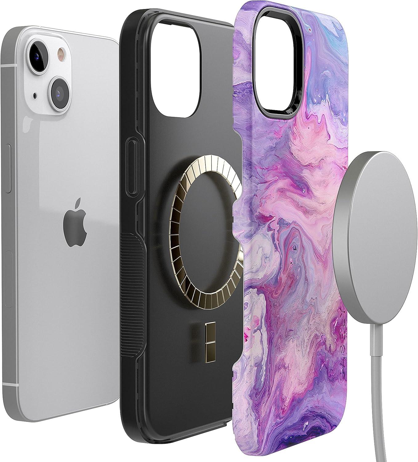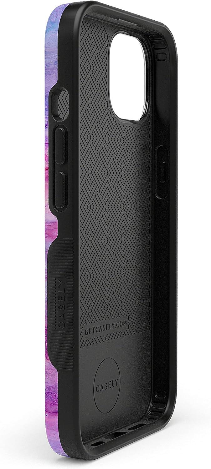 Casely iPhone 14 Plus Case | Coquette Girlie | Pastel Bows | Bold Protective Design | Compatible with MagSafe(Tie Dying Over You Purple Marble)