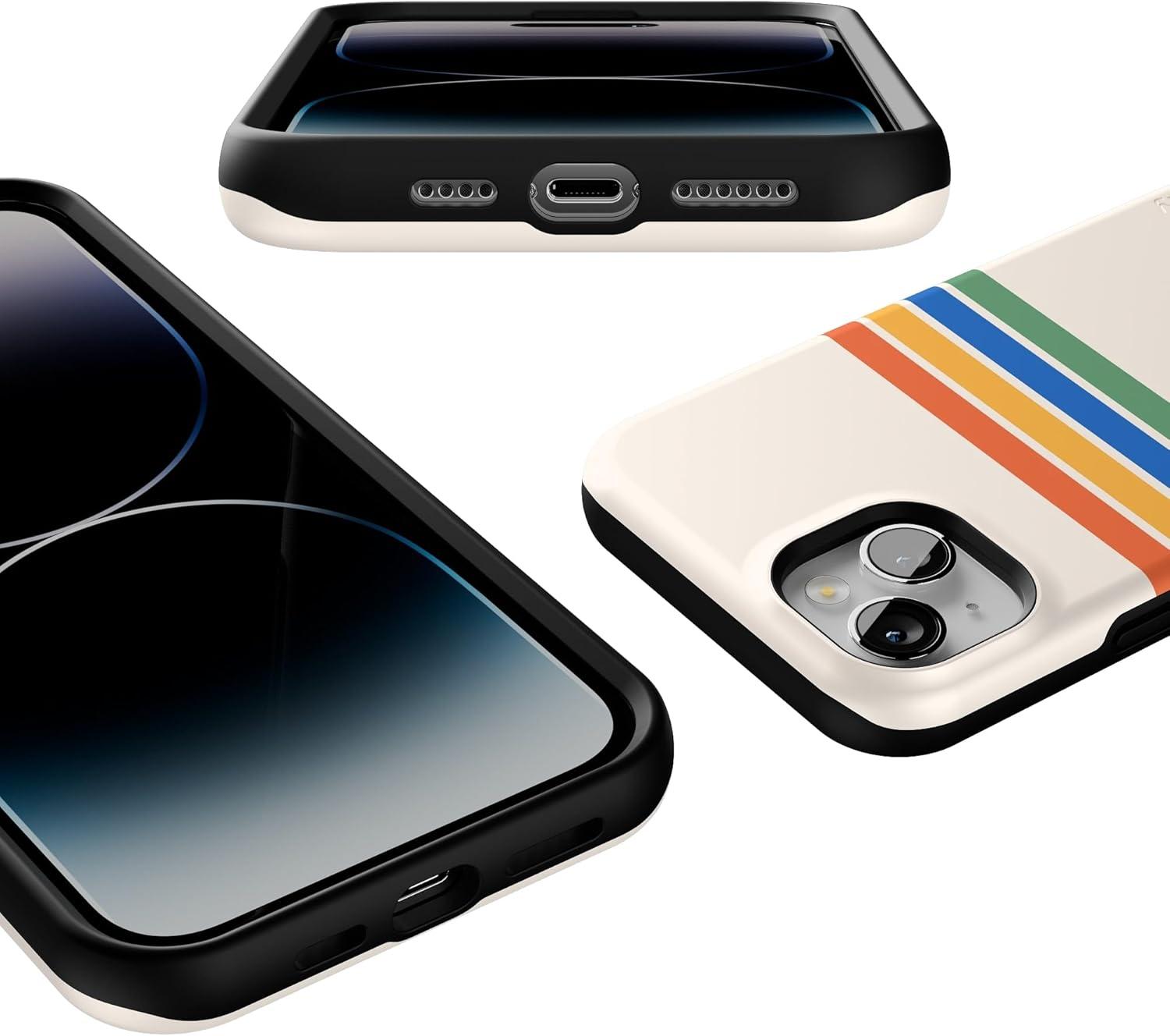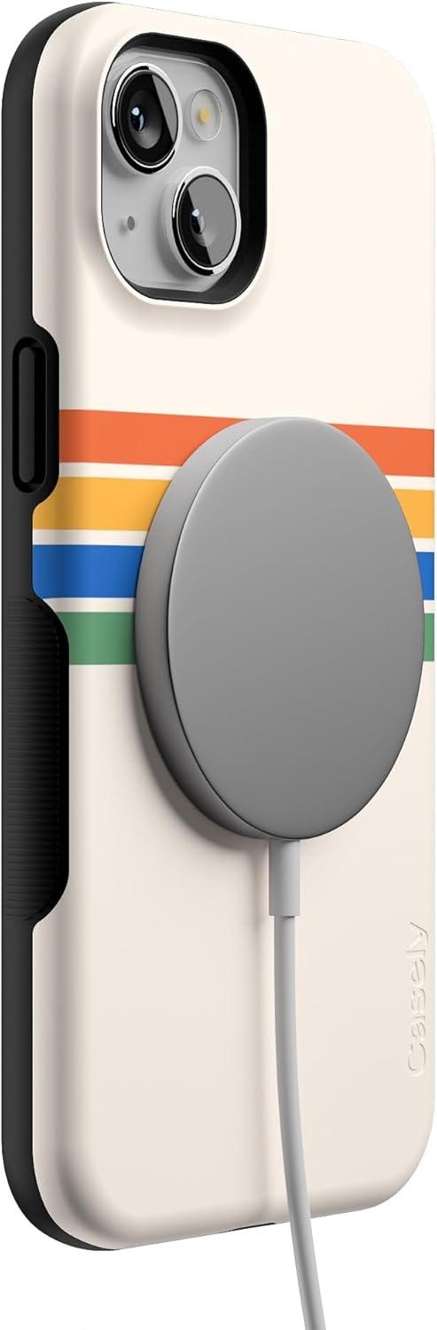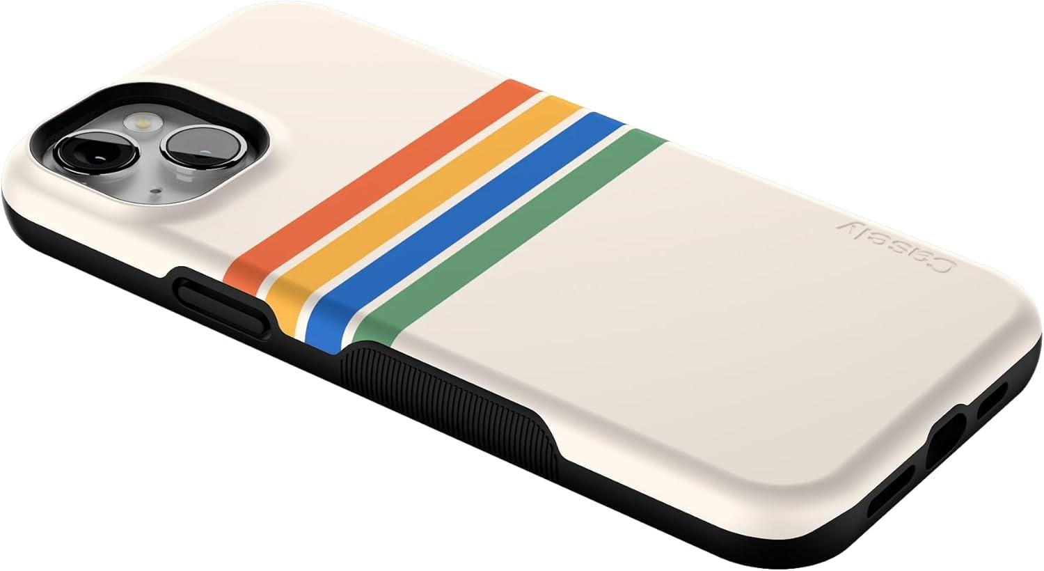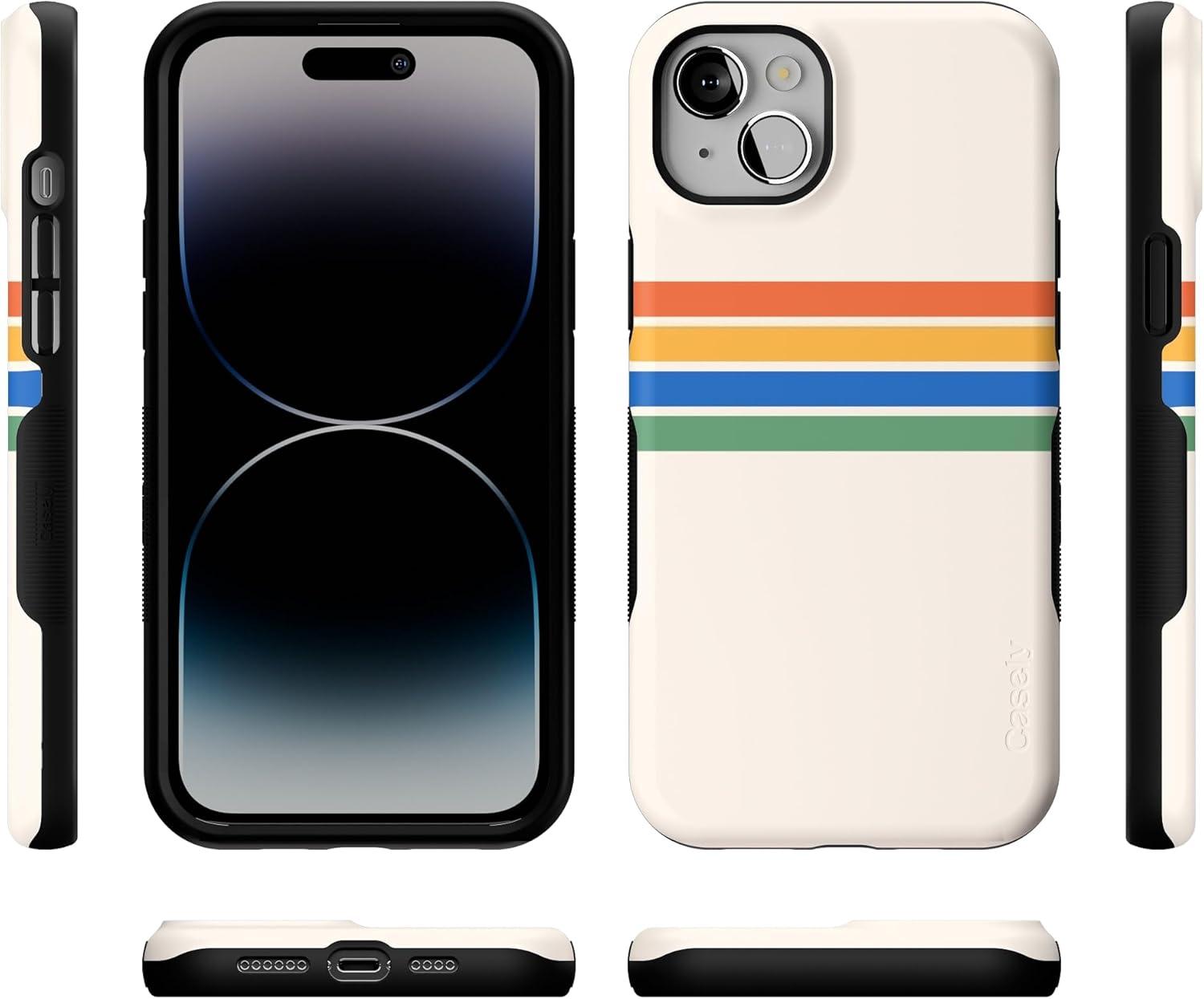 Casely iPhone 14 Plus Case | Coquette Girlie | Pastel Bows | Bold Protective Design | Compatible with MagSafe(Totally Groovy | Rainbow Stripes Color Block)