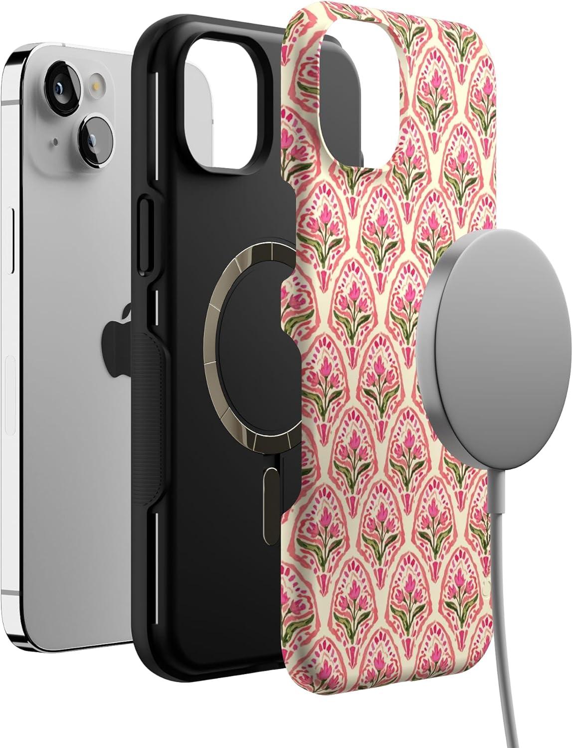 Casely iPhone 14 Plus Case | Coquette Girlie | Pastel Bows | Bold Protective Design | Compatible with MagSafe(Tulip Tapestry | Jenna Palek x Casely)
