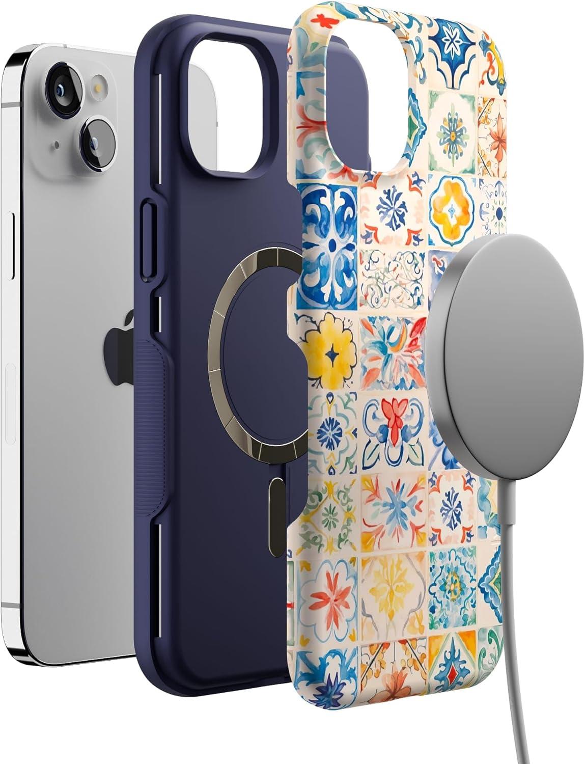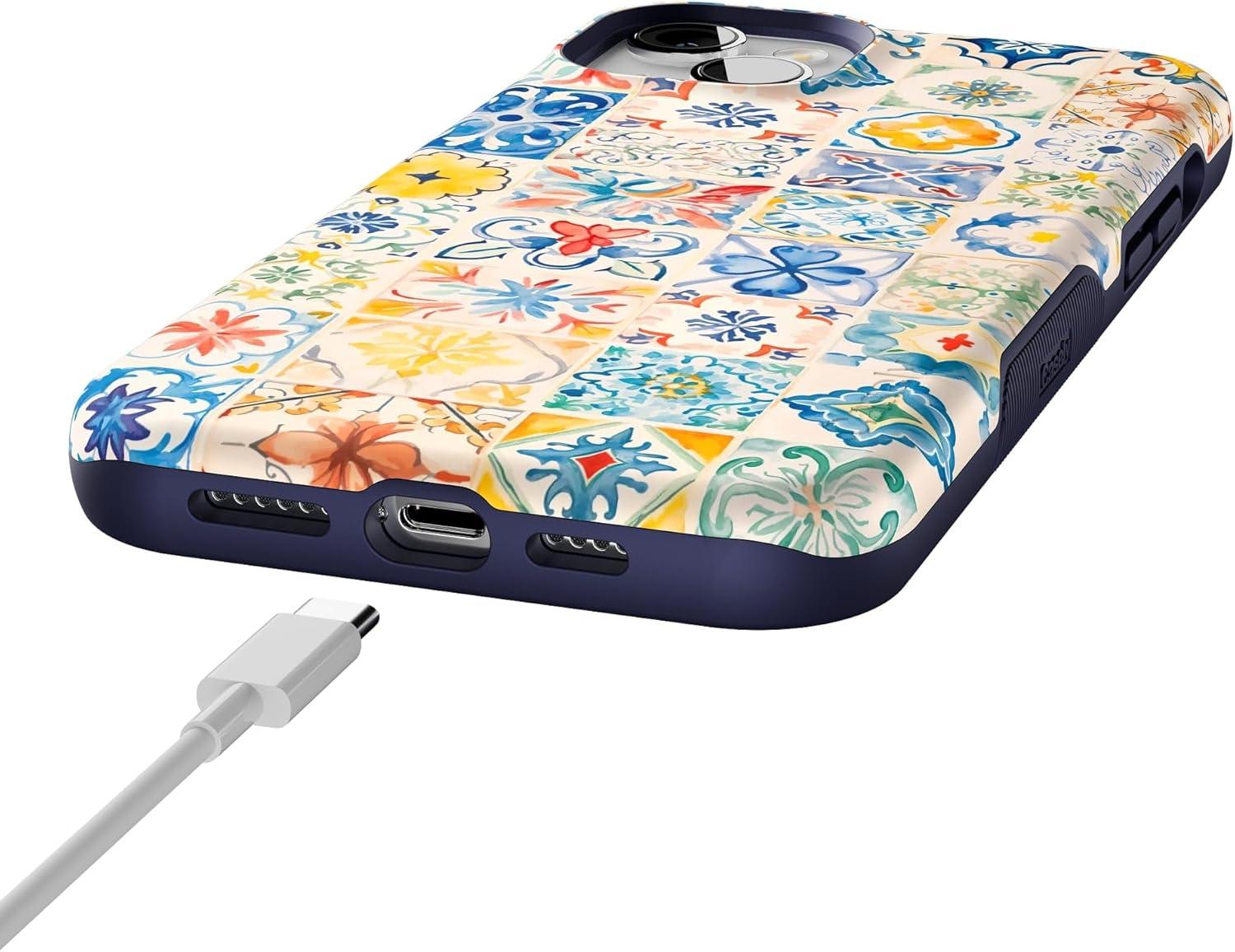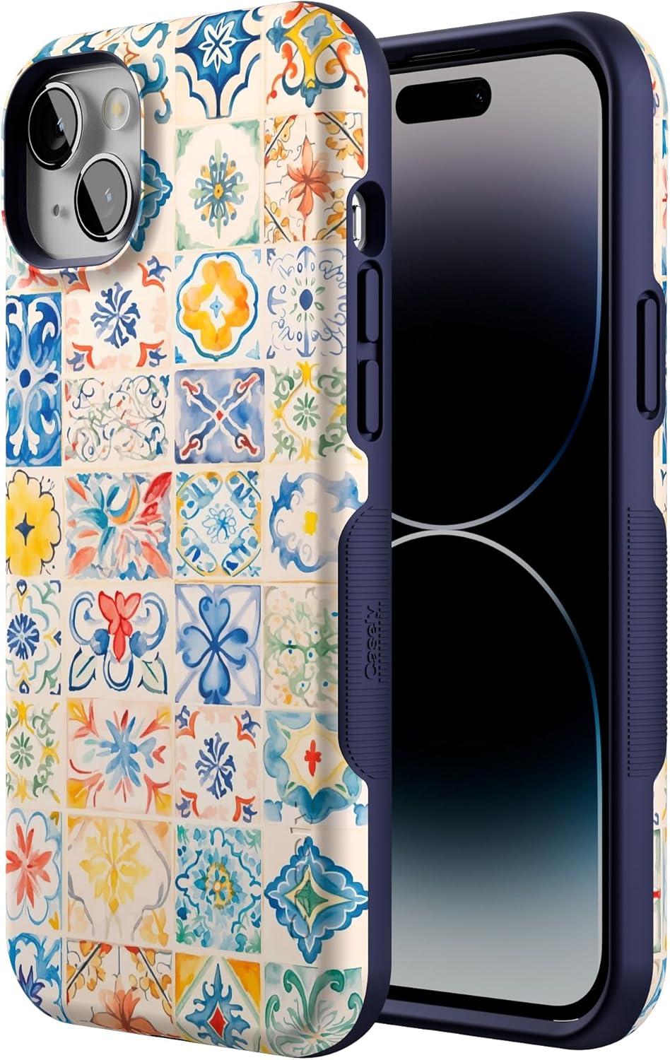 Casely iPhone 14 Plus Case | Coquette Girlie | Pastel Bows | Bold Protective Design | Compatible with MagSafe(Tuscan Tiles | Dolce Vita)