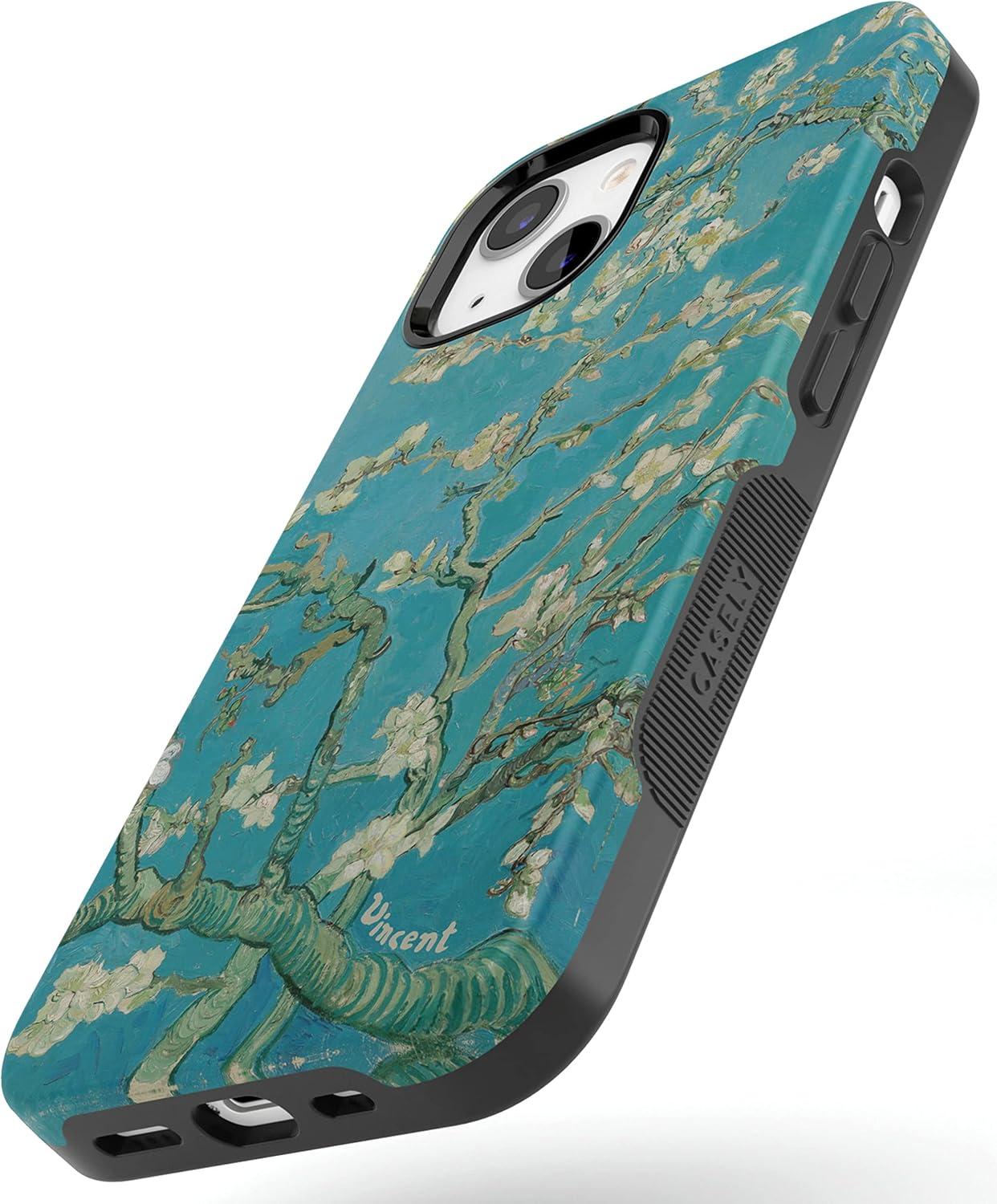 Casely iPhone 14 Plus Case | Coquette Girlie | Pastel Bows | Bold Protective Design | Compatible with MagSafe(Van Gogh | Almond Blossom Floral)