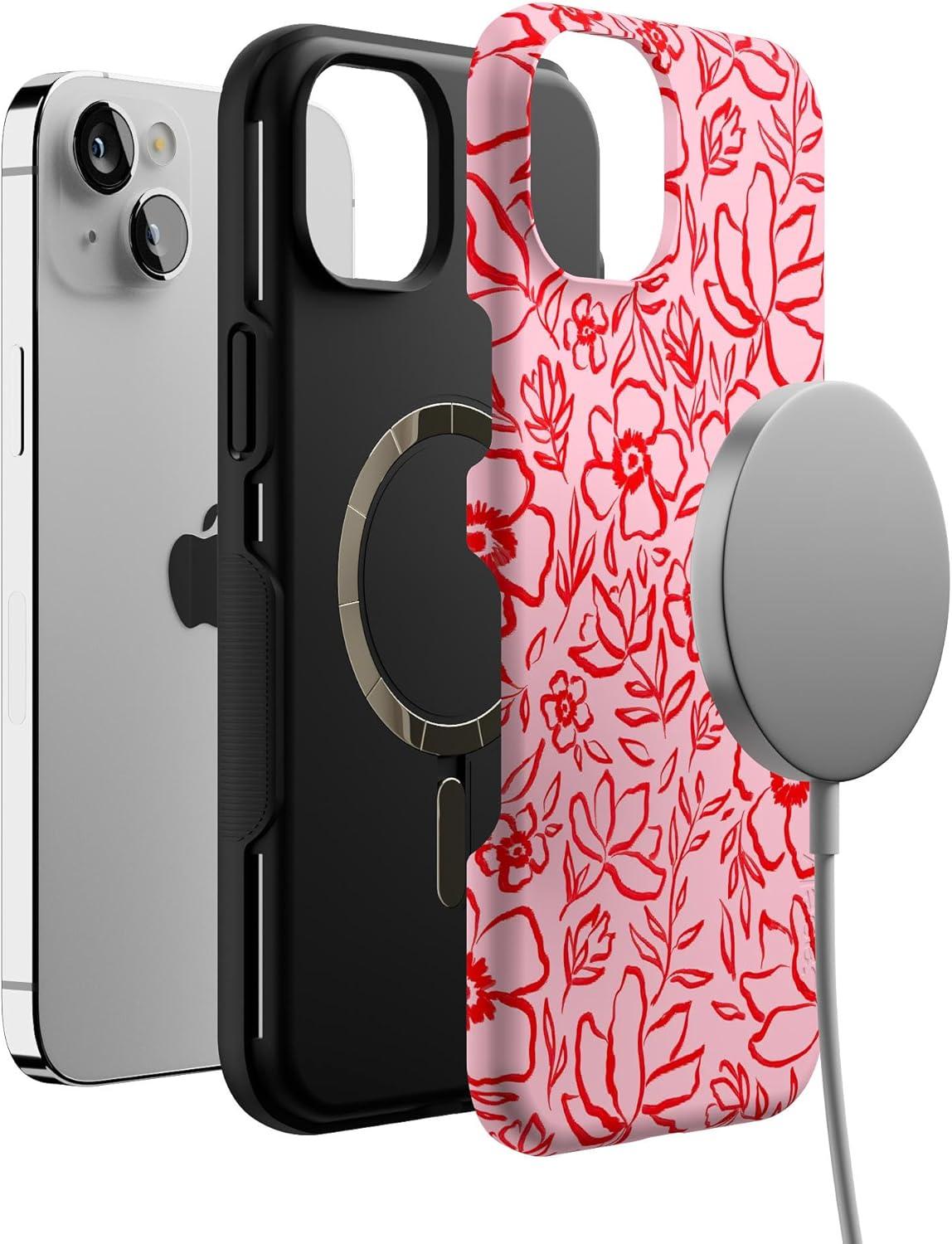 Casely iPhone 14 Plus Case | Cowgirl Canyon | FashionPass x Casely | Bold Protective Case Design | Compatible with MagSafe(Blush Garden | Floral Doodle)