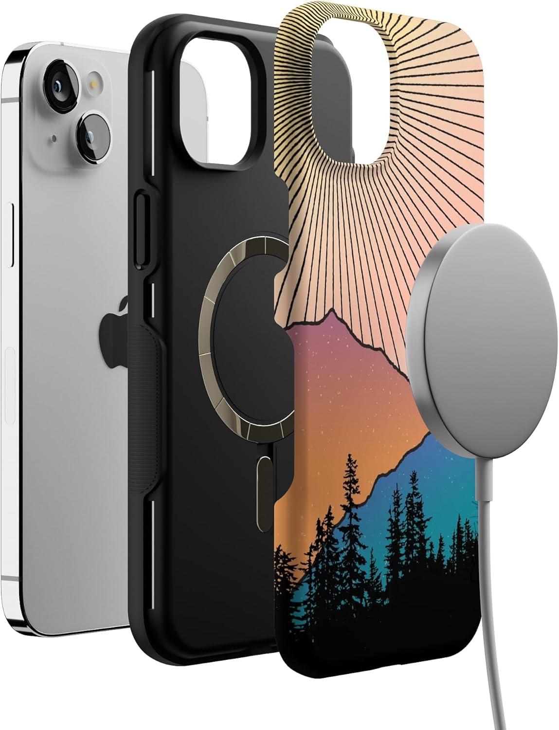 Casely iPhone 14 Plus Case | Cowgirl Canyon | FashionPass x Casely | Bold Protective Case Design | Compatible with MagSafe(Golden Hour | Mountain Sunset)