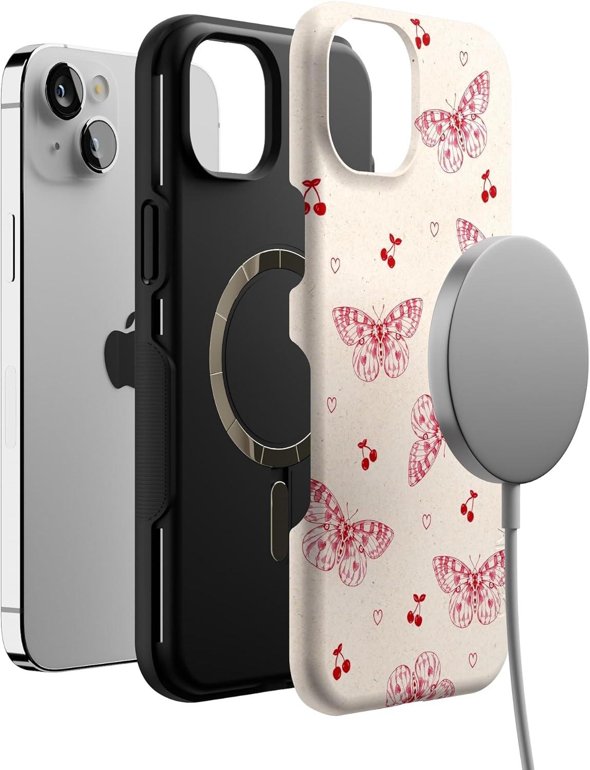 Casely iPhone 14 Plus Case | Cowgirl Canyon | FashionPass x Casely | Bold Protective Case Design | Compatible with MagSafe(Heart Flutters | Butterfly)