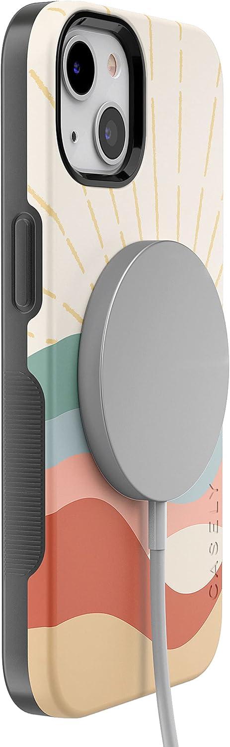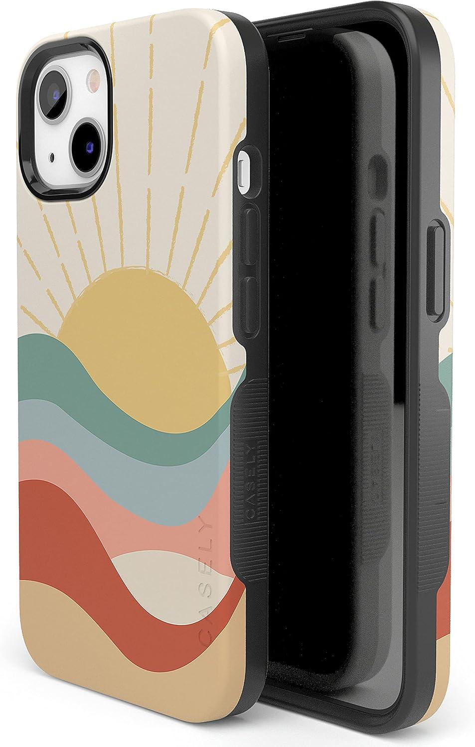 Casely iPhone 14 Plus Case | Cowgirl Canyon | FashionPass x Casely | Bold Protective Case Design | Compatible with MagSafe(Here Comes the Sun | Colorblock Sunset)