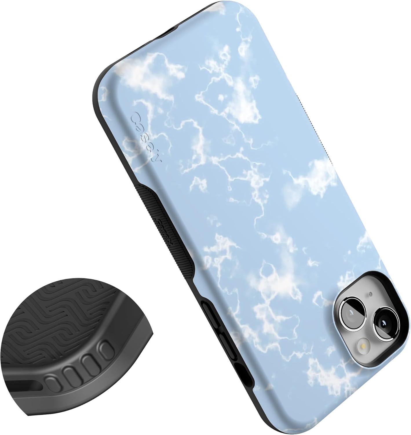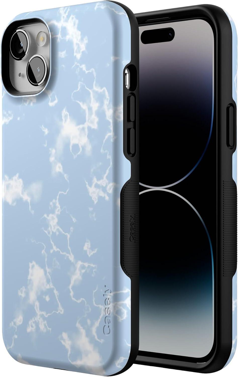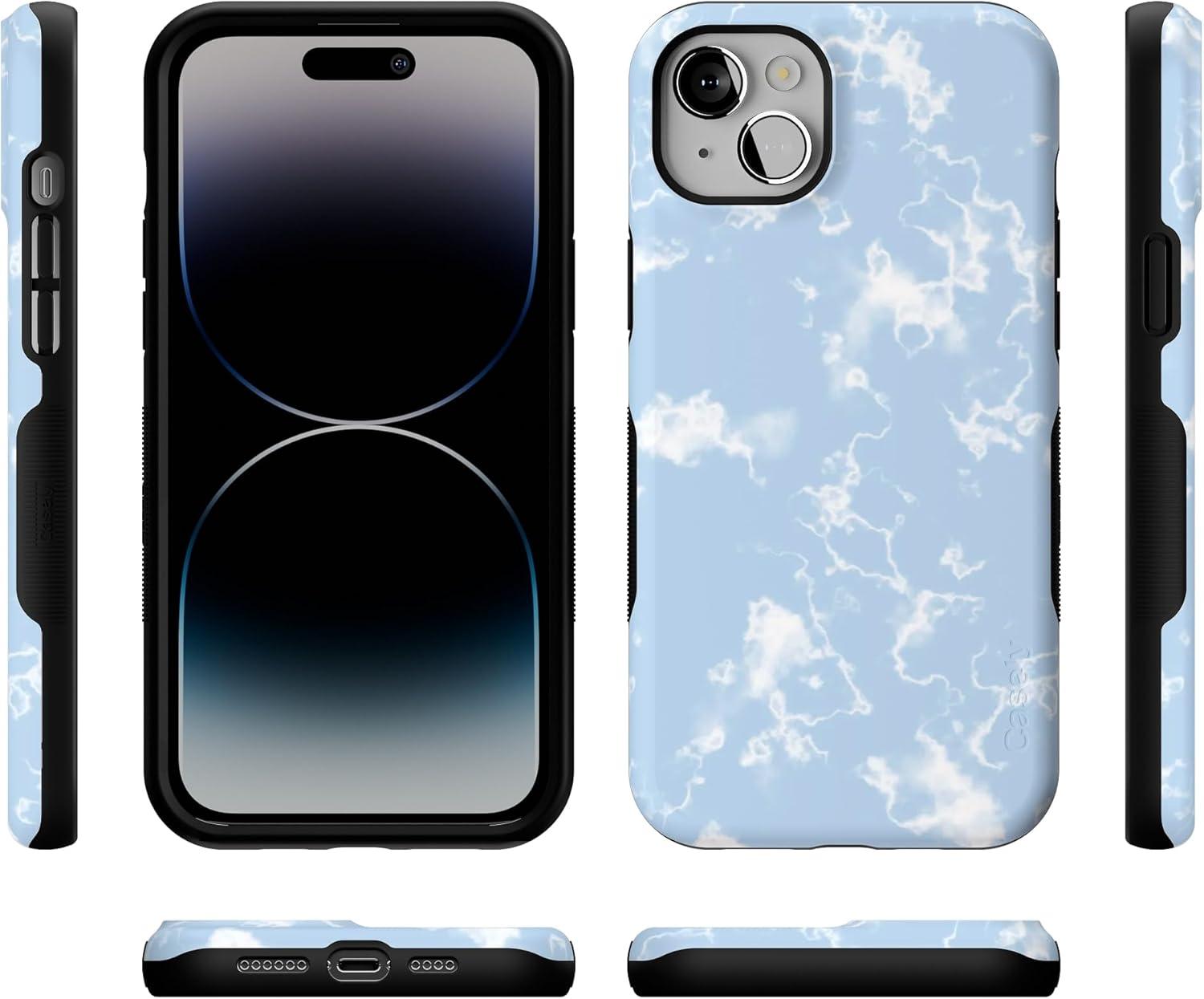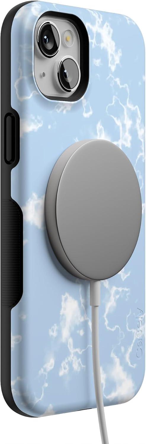 Casely iPhone 14 Plus Case | Cowgirl Canyon | FashionPass x Casely | Bold Protective Case Design | Compatible with MagSafe(Light Blue Skies | Marble Clouds)
