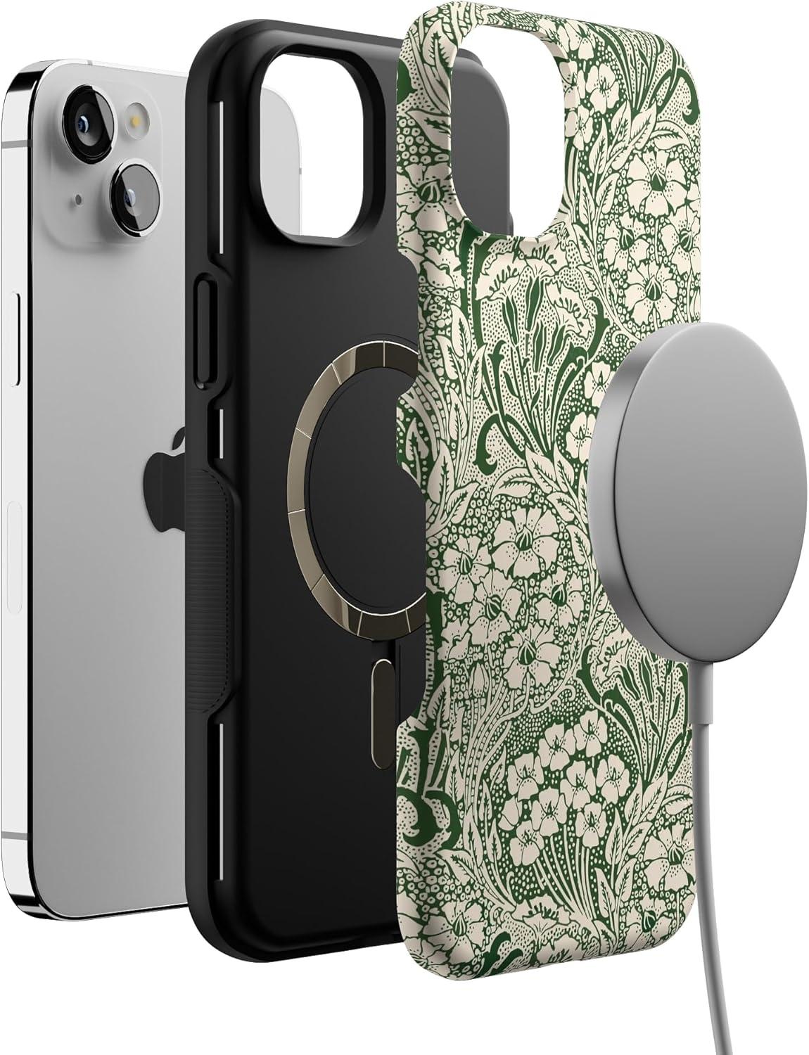 Casely iPhone 14 Plus Case | Cowgirl Canyon | FashionPass x Casely | Bold Protective Case Design | Compatible with MagSafe(Mystic Meadow | Green Gardens)