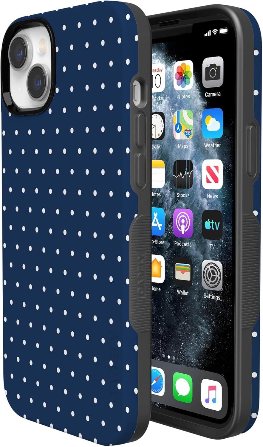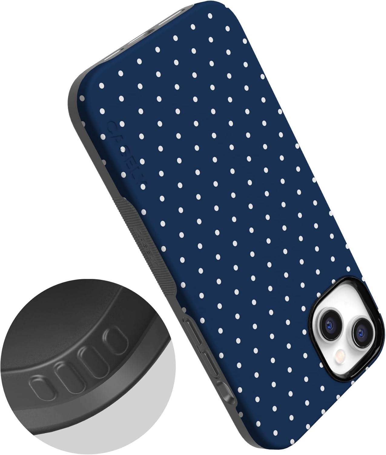 Casely iPhone 14 Plus Case | Cowgirl Canyon | FashionPass x Casely | Bold Protective Case Design | Compatible with MagSafe(On the Dot | Navy Polka Dot)