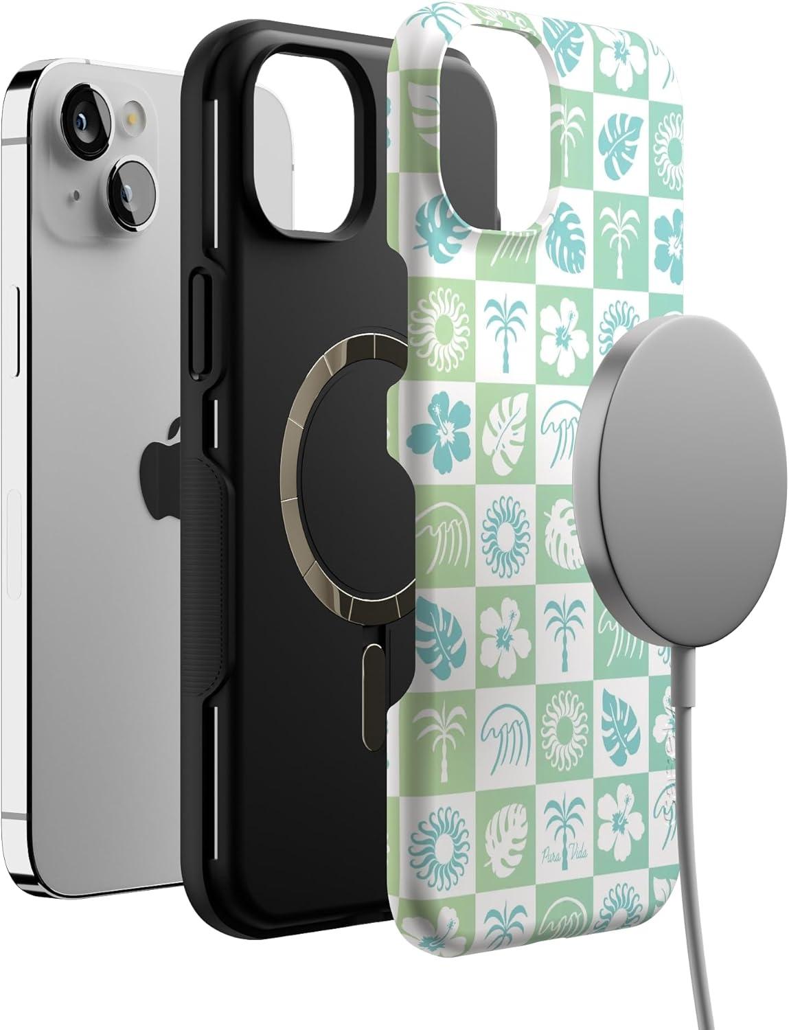 Casely iPhone 14 Plus Case | Cowgirl Canyon | FashionPass x Casely | Bold Protective Case Design | Compatible with MagSafe(Pura Vida | Coastal Checkers)