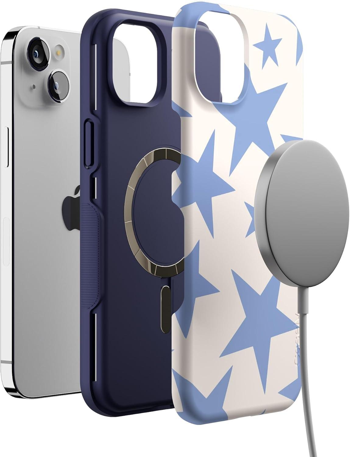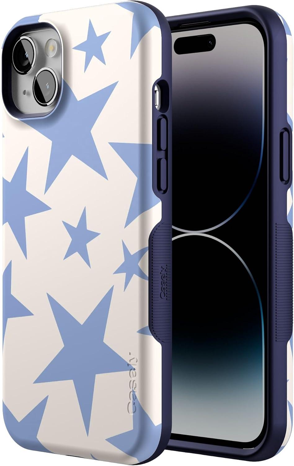 Casely iPhone 14 Plus Case | Cowgirl Canyon | FashionPass x Casely | Bold Protective Case Design | Compatible with MagSafe(Stars Align | Blue & White Stars)