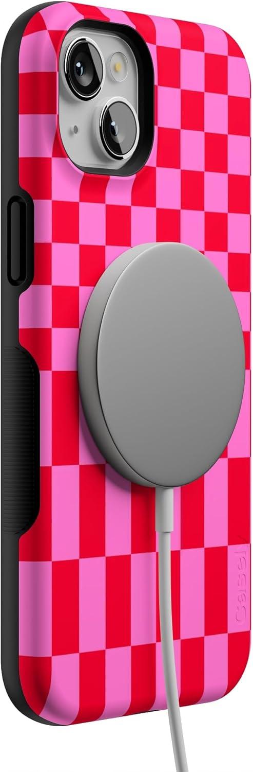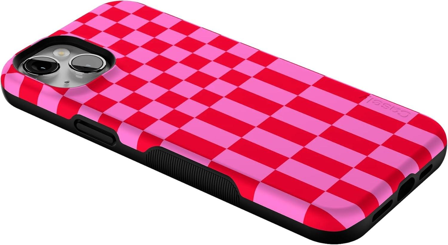 Casely iPhone 14 Plus Case | Cowgirl Canyon | FashionPass x Casely | Bold Protective Case Design | Compatible with MagSafe(Vibe Check | Pink Checkerboard)