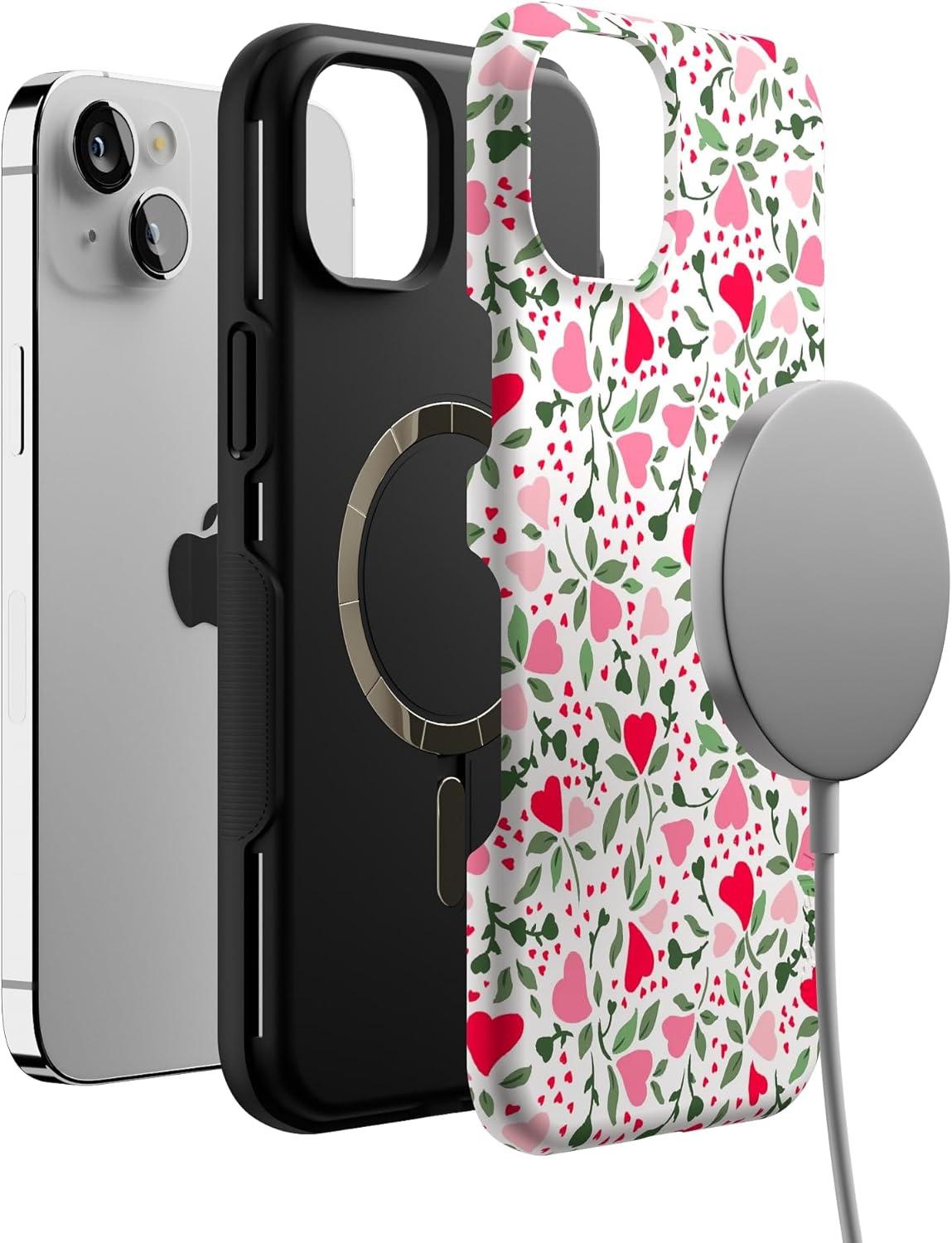 Casely iPhone 14 Plus Case | Cowgirl Canyon | FashionPass x Casely | Bold Protective Case Design | Compatible with MagSafe(Vines of Love | Floral Heart)