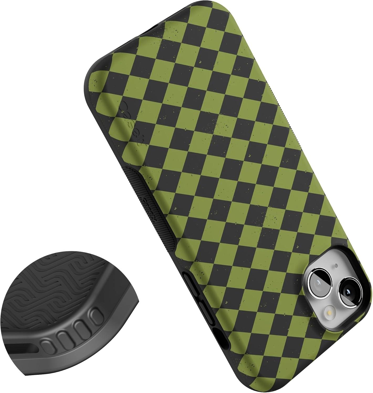 Casely iPhone 14 Plus Case | Harlequin Wicked Diamond | Black and Green | Compatible with MagSafe | Bold Protective Design