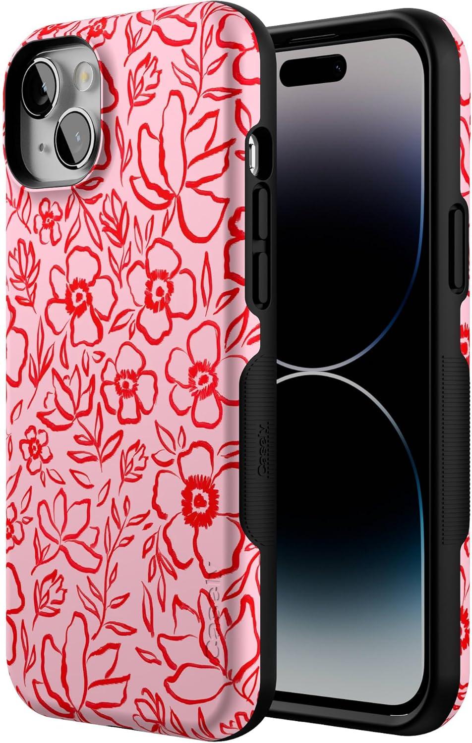 Casely iPhone 14 Plus Case | Opposites Attract | Day & Night Mountains | Bold Protective Design | Compatible with MagSafe(Blush Garden | Floral Doodle)