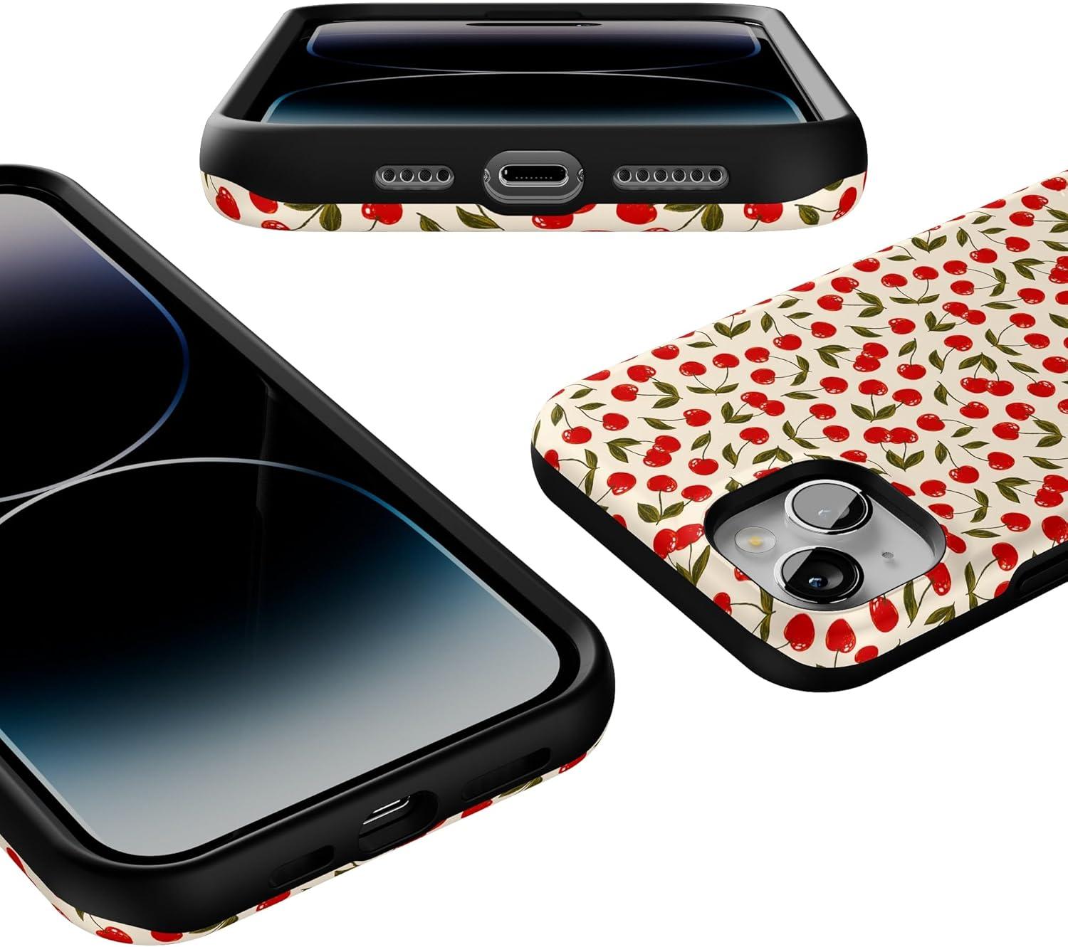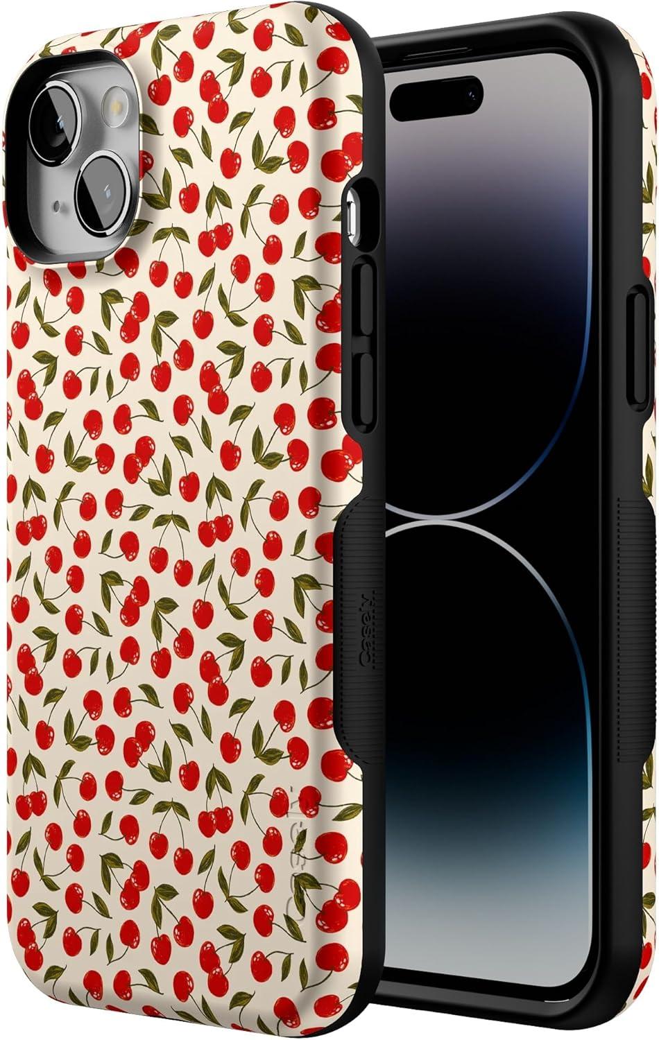 Casely iPhone 14 Plus Case | Opposites Attract | Day & Night Mountains | Bold Protective Design | Compatible with MagSafe(Cherry on Top | Red Cherries)