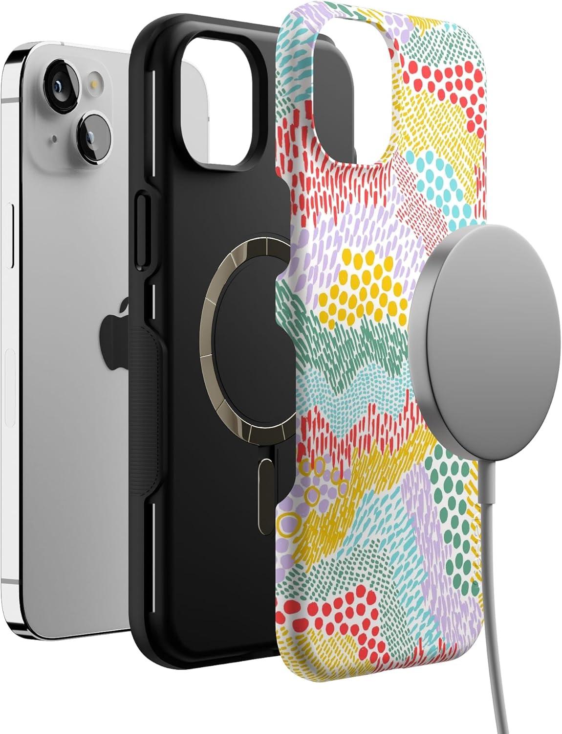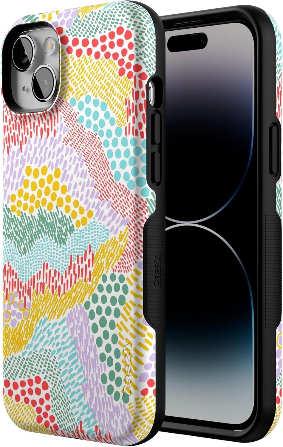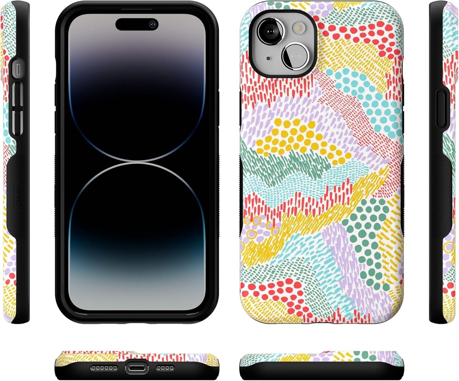 Casely iPhone 14 Plus Case | Opposites Attract | Day & Night Mountains | Bold Protective Design | Compatible with MagSafe(Color Me Happy | Pattern Colorblock)