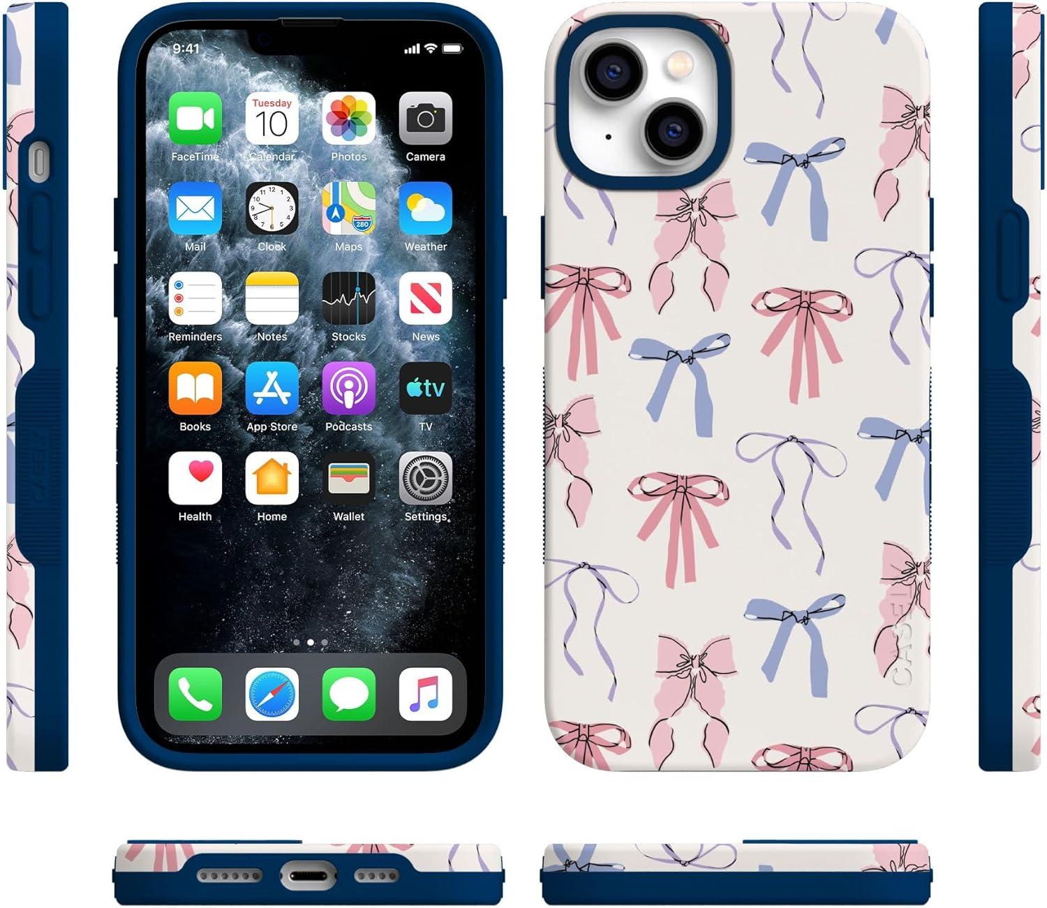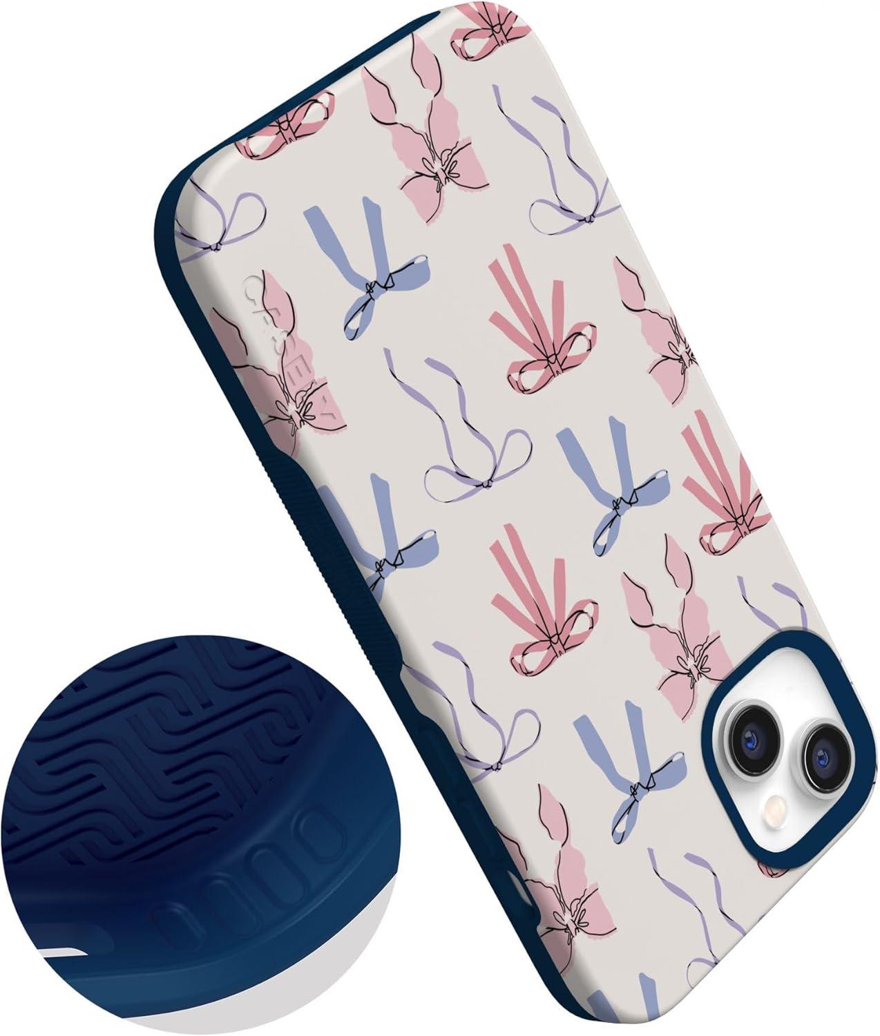 Casely iPhone 14 Plus Case | Opposites Attract | Day & Night Mountains | Bold Protective Design | Compatible with MagSafe(Coquette Girlie | Pastel Bows)