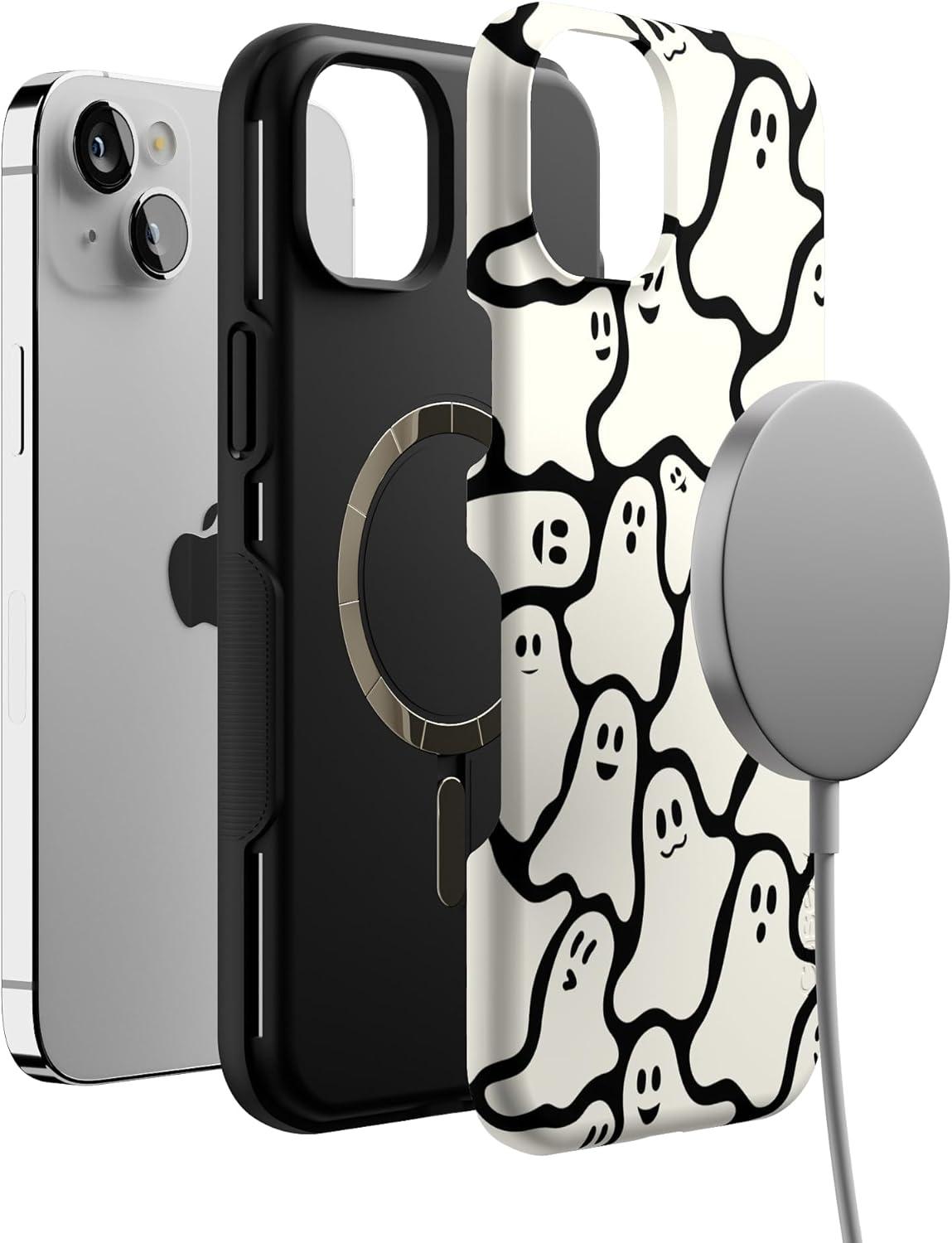 Casely iPhone 14 Plus Case | Opposites Attract | Day & Night Mountains | Bold Protective Design | Compatible with MagSafe(Don’t Ghost Me | Halloween)