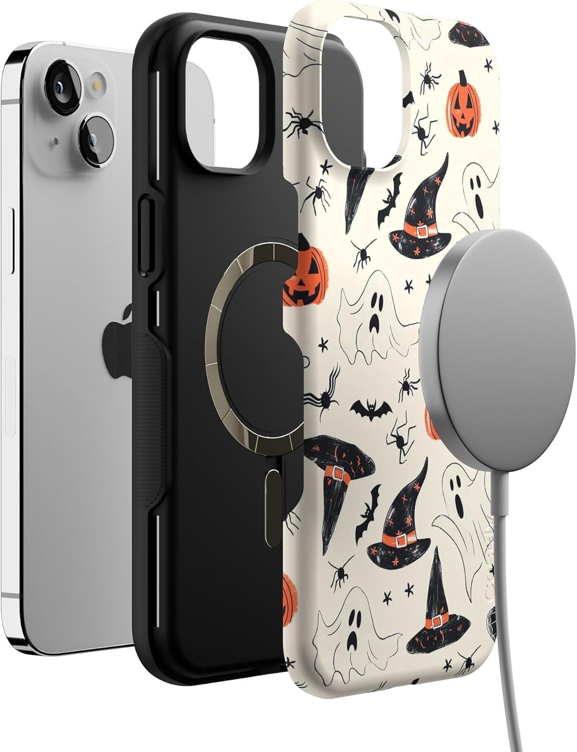 Casely iPhone 14 Plus Case | Opposites Attract | Day & Night Mountains | Bold Protective Design | Compatible with MagSafe(Feeling Witchy | Haunted Halloween)