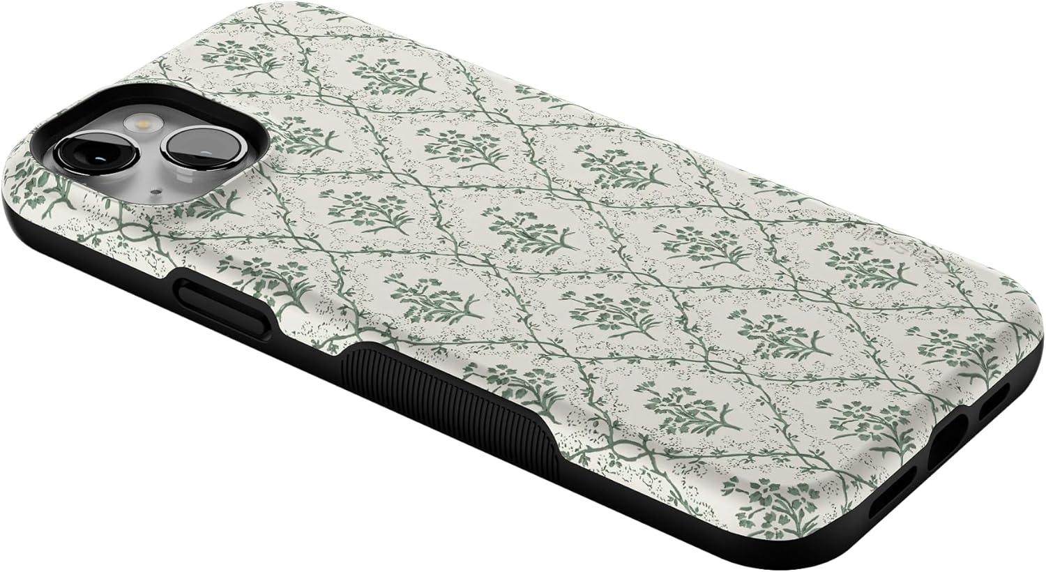 Casely iPhone 14 Plus Case | Opposites Attract | Day & Night Mountains | Bold Protective Design | Compatible with MagSafe(Floral Vines | Sage Tapestry)