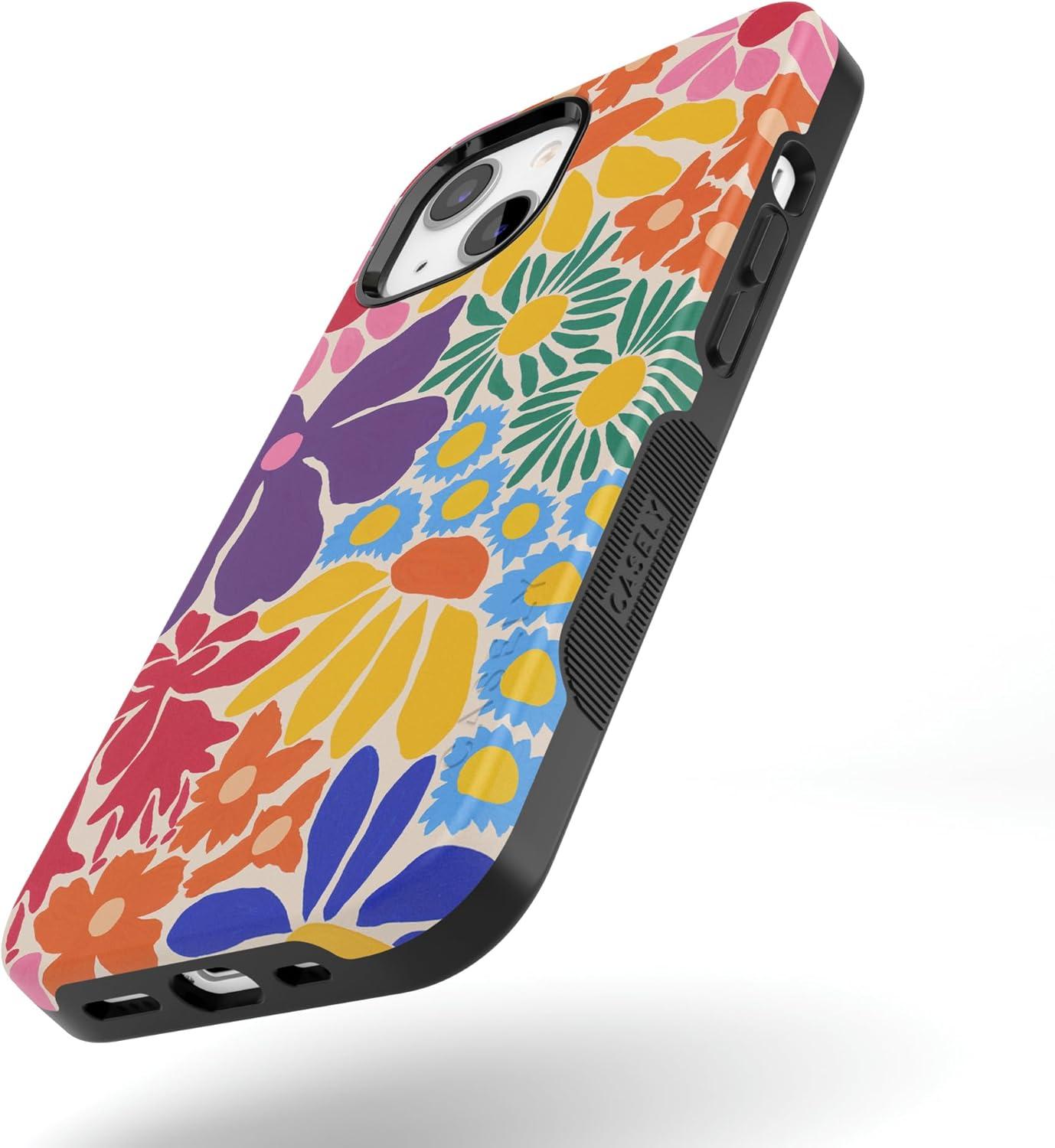 Casely iPhone 14 Plus Case | Opposites Attract | Day & Night Mountains | Bold Protective Design | Compatible with MagSafe(Flower Patch | Multi-Color Floral)