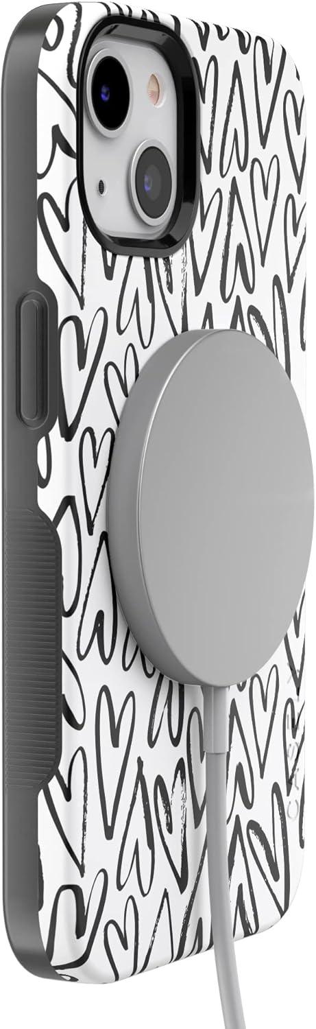 Casely iPhone 14 Plus Case | Opposites Attract | Day & Night Mountains | Bold Protective Design | Compatible with MagSafe(Heart Throb | Endless Hearts)