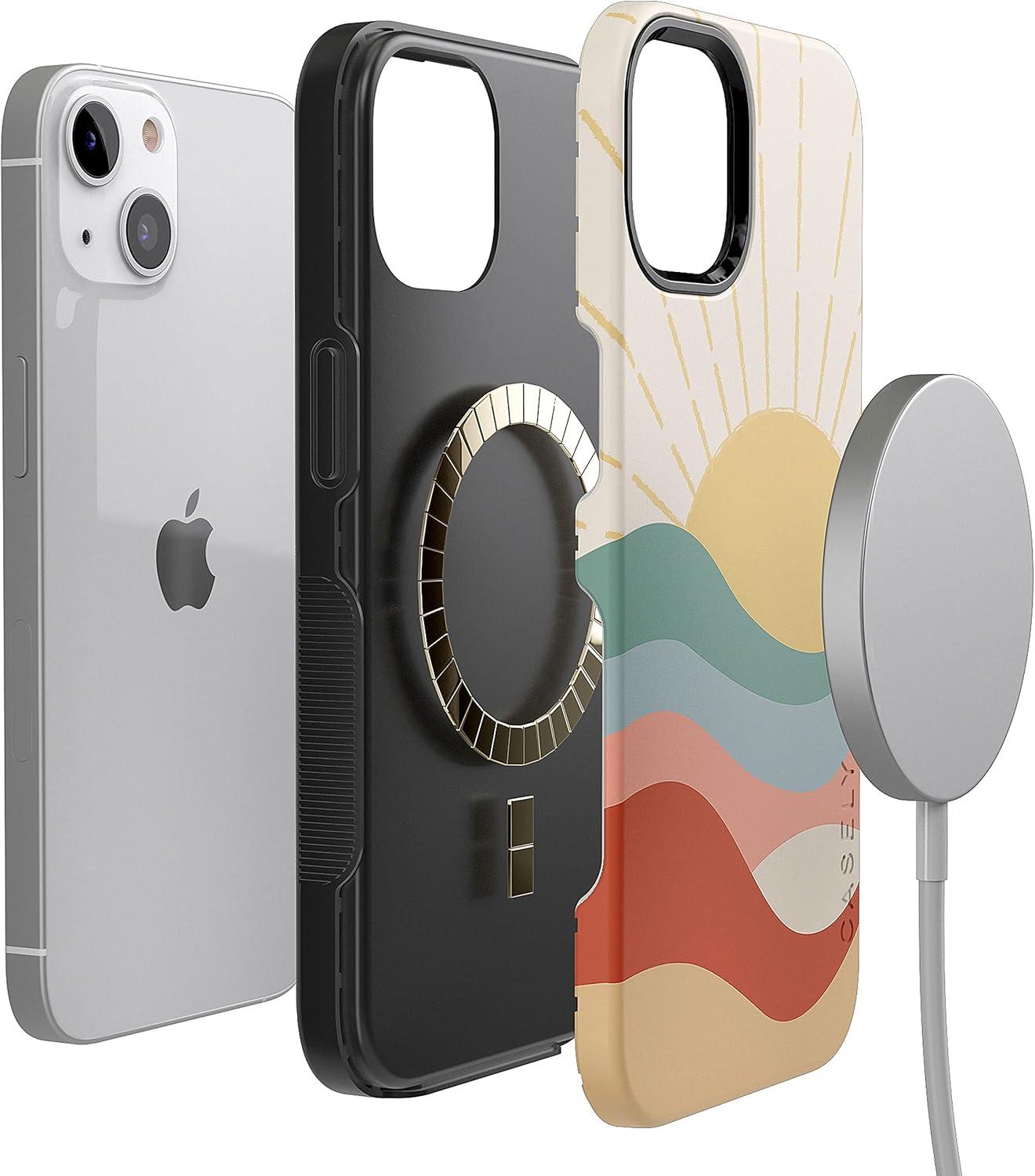 Casely iPhone 14 Plus Case | Opposites Attract | Day & Night Mountains | Bold Protective Design | Compatible with MagSafe(Here Comes the Sun | Colorblock Sunset)