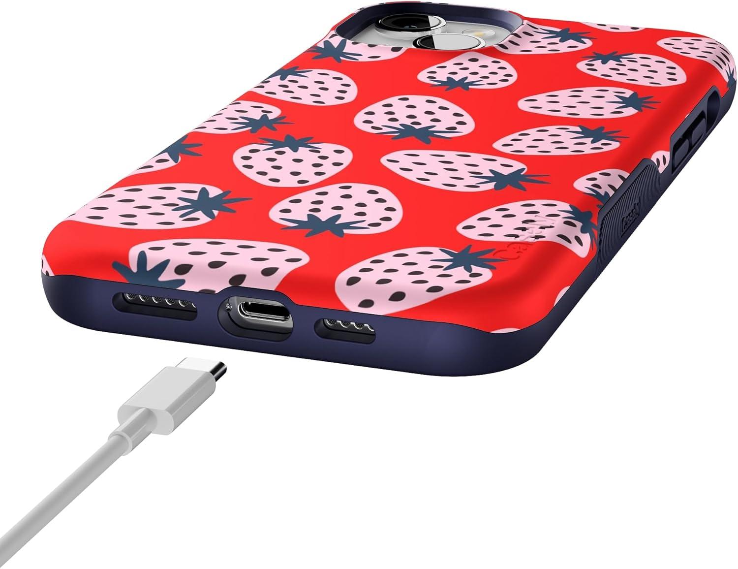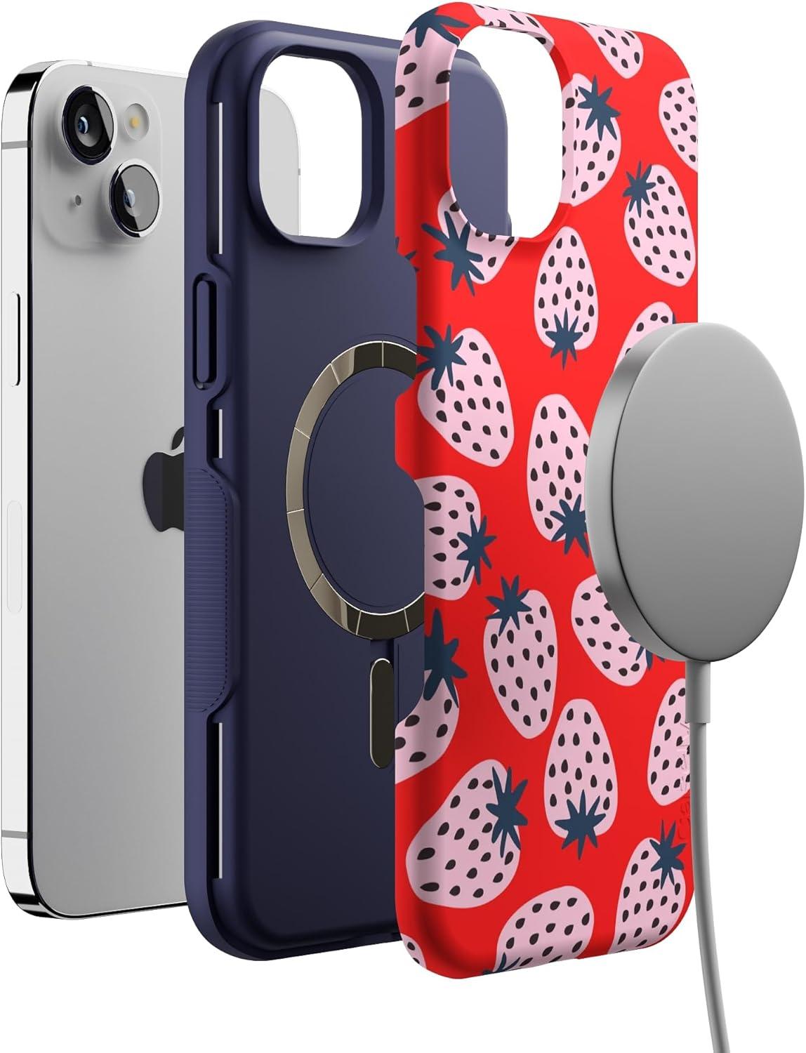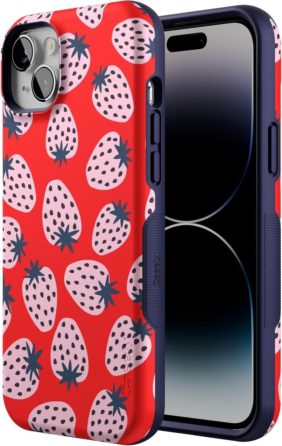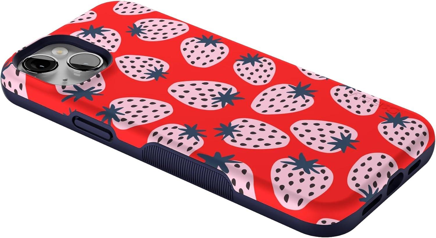 Casely iPhone 14 Plus Case | Opposites Attract | Day & Night Mountains | Bold Protective Design | Compatible with MagSafe(I’d Pick You | Red Strawberry)