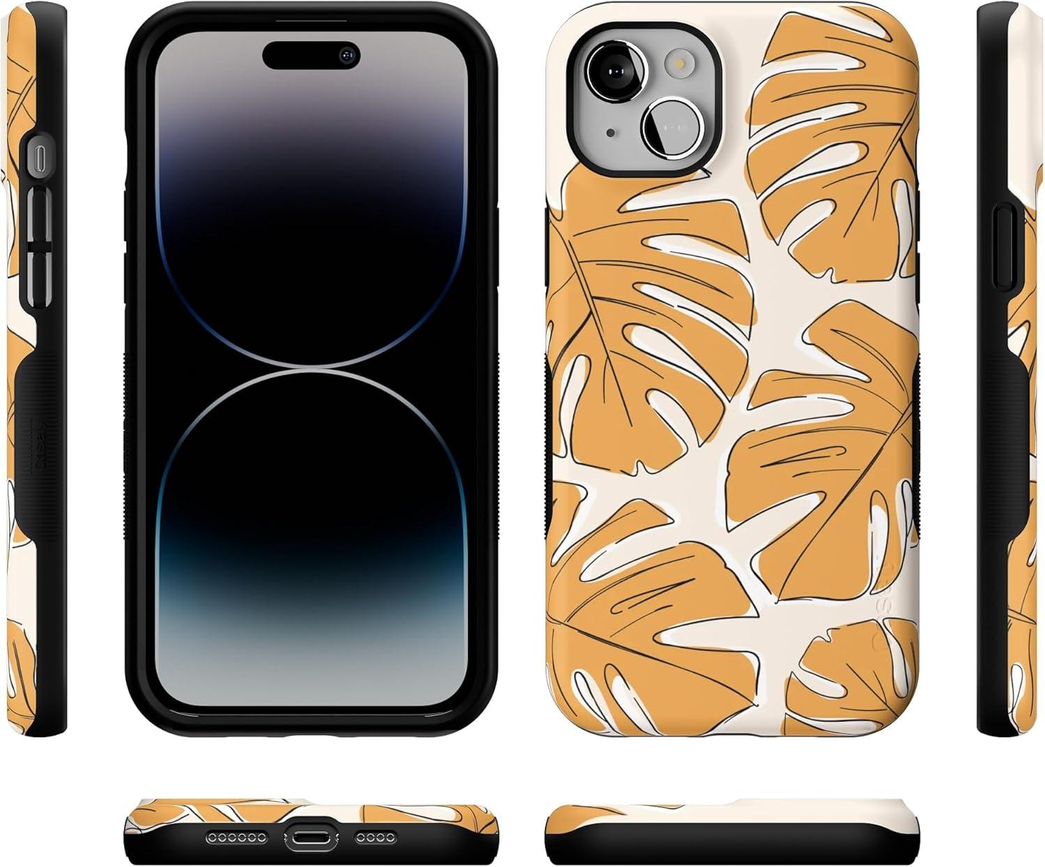 Casely iPhone 14 Plus Case | Opposites Attract | Day & Night Mountains | Bold Protective Design | Compatible with MagSafe(Island Time | Tropical Leaves Floral)