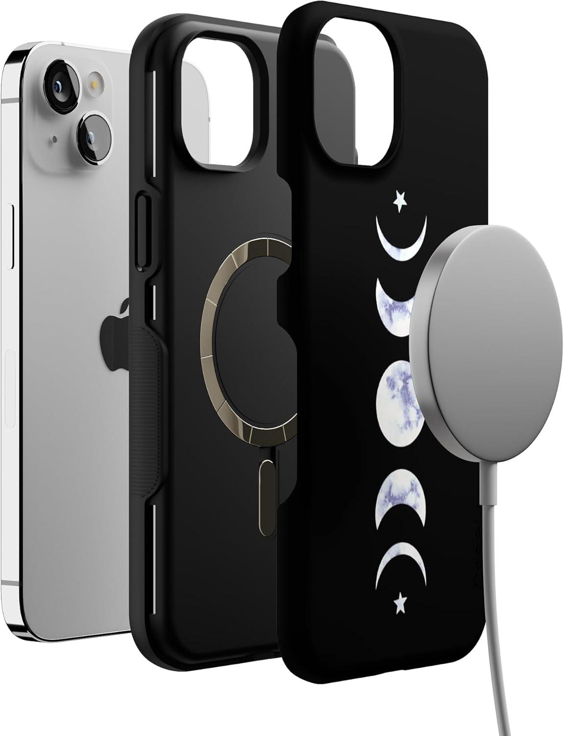 Casely iPhone 14 Plus Case | Opposites Attract | Day & Night Mountains | Bold Protective Design | Compatible with MagSafe(It’s Just a Phase | Marble Moon)