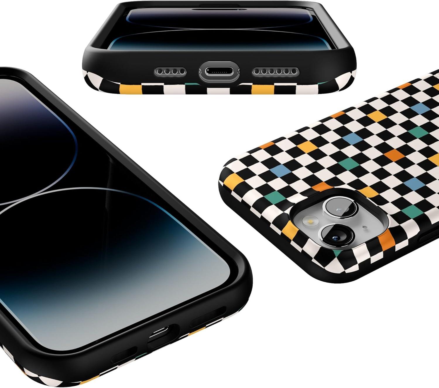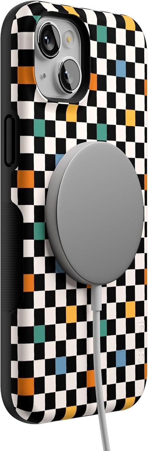 Casely iPhone 14 Plus Case | Opposites Attract | Day & Night Mountains | Bold Protective Design | Compatible with MagSafe(Old Skool | Retro Checkerboard)