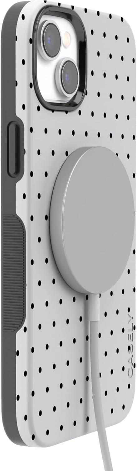 Casely iPhone 14 Plus Case | Opposites Attract | Day & Night Mountains | Bold Protective Design | Compatible with MagSafe(On the Dot | White Polka Dot)