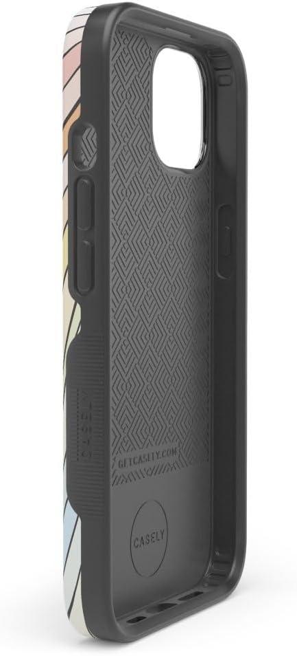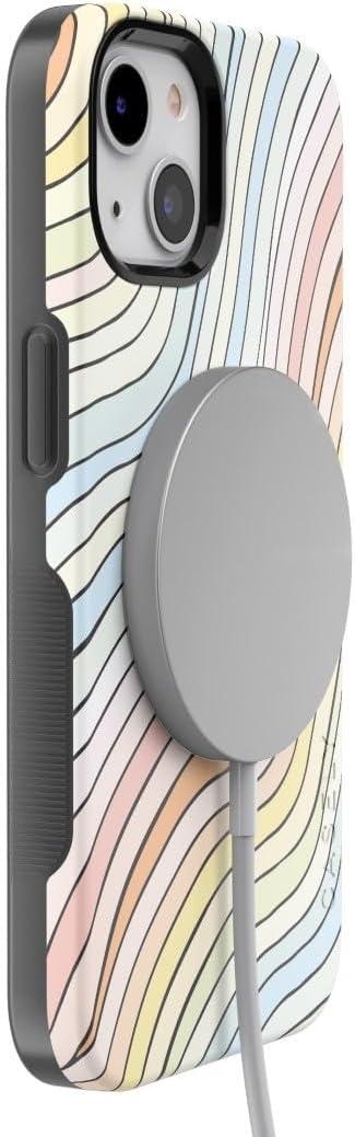 Casely iPhone 14 Plus Case | Opposites Attract | Day & Night Mountains | Bold Protective Design | Compatible with MagSafe(Ride The Wave | Pastel Rainbow Lined)