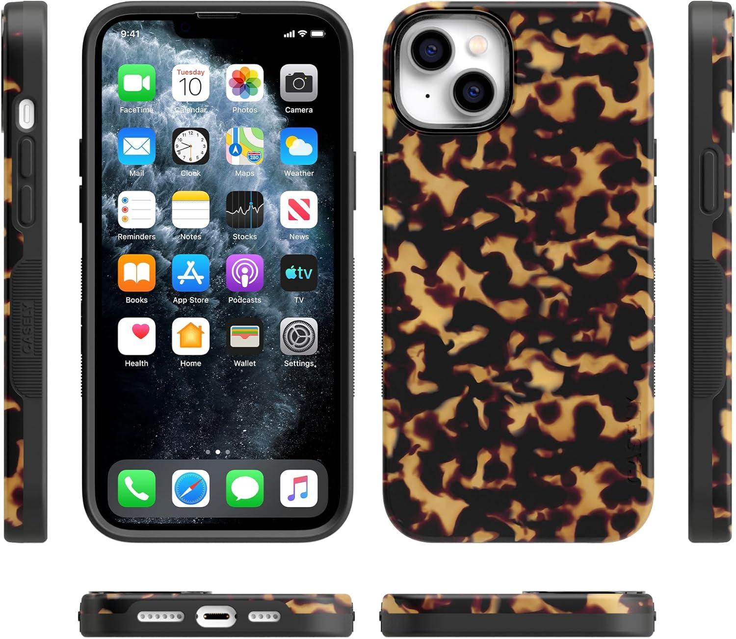 Casely iPhone 14 Plus Case | Opposites Attract | Day & Night Mountains | Bold Protective Design | Compatible with MagSafe(Shell Shocked | Tortoise Print)