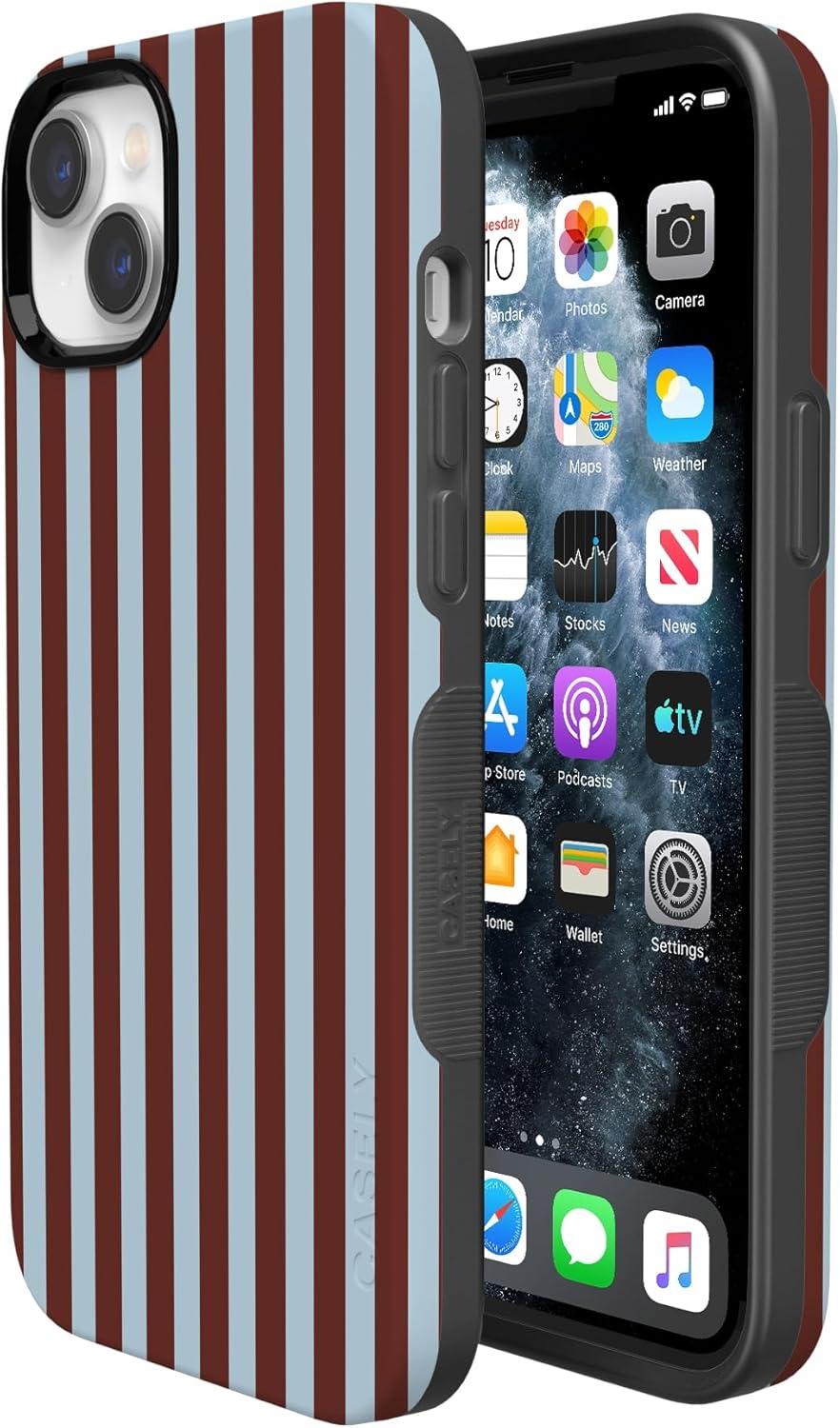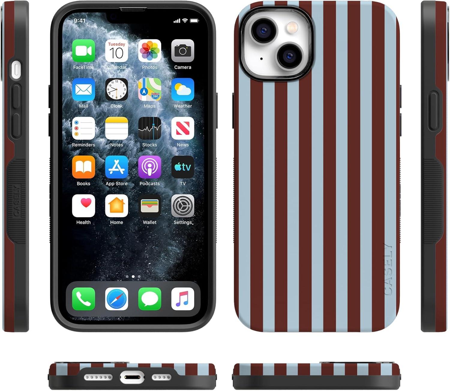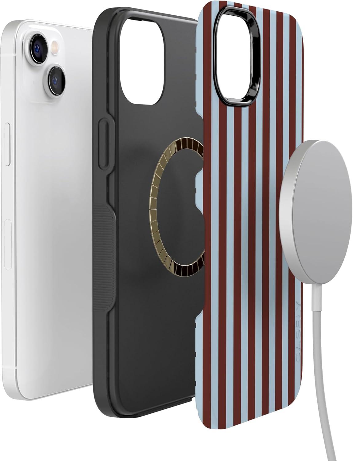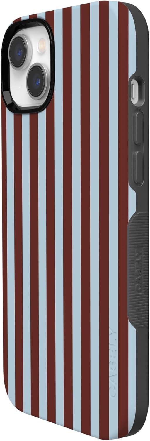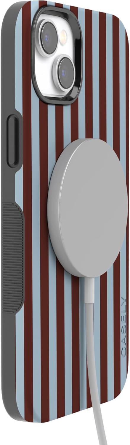 Casely iPhone 14 Plus Case | Opposites Attract | Day & Night Mountains | Bold Protective Design | Compatible with MagSafe(Sunday in Brooklyn | Chocolate Stripes)