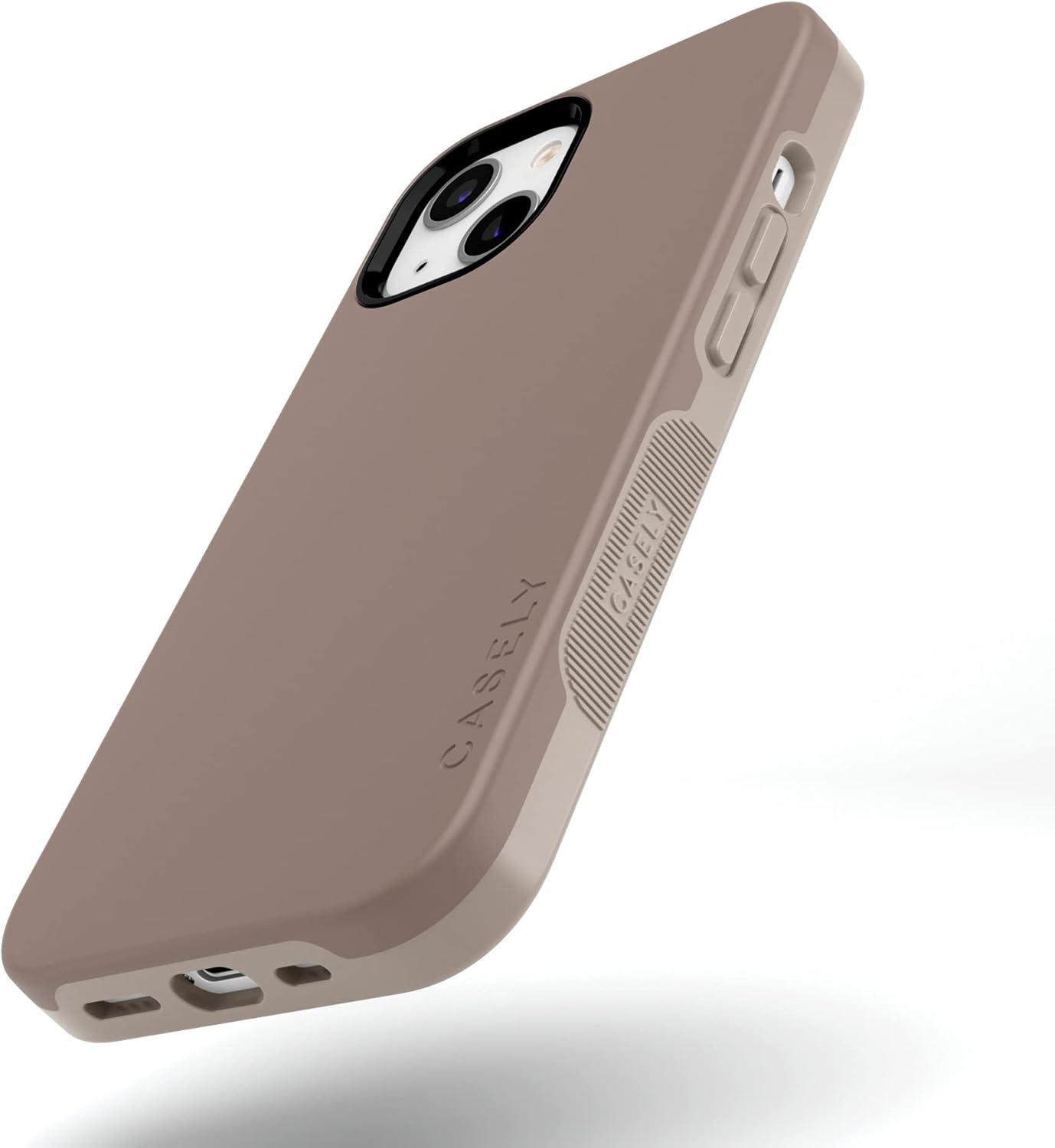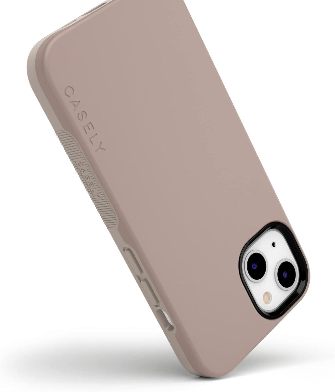 Casely iPhone 14 Plus Case | Opposites Attract | Day & Night Mountains | Bold Protective Design | Compatible with MagSafe(Taupe on Nude)