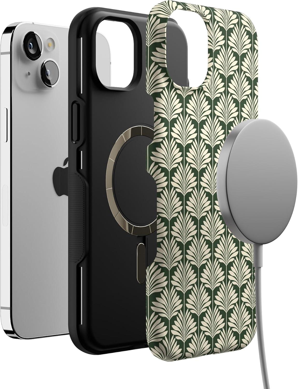 Casely iPhone 14 Plus Case | Opposites Attract | Day & Night Mountains | Bold Protective Design | Compatible with MagSafe(The Boyfriend Collection | Cabana Nights)