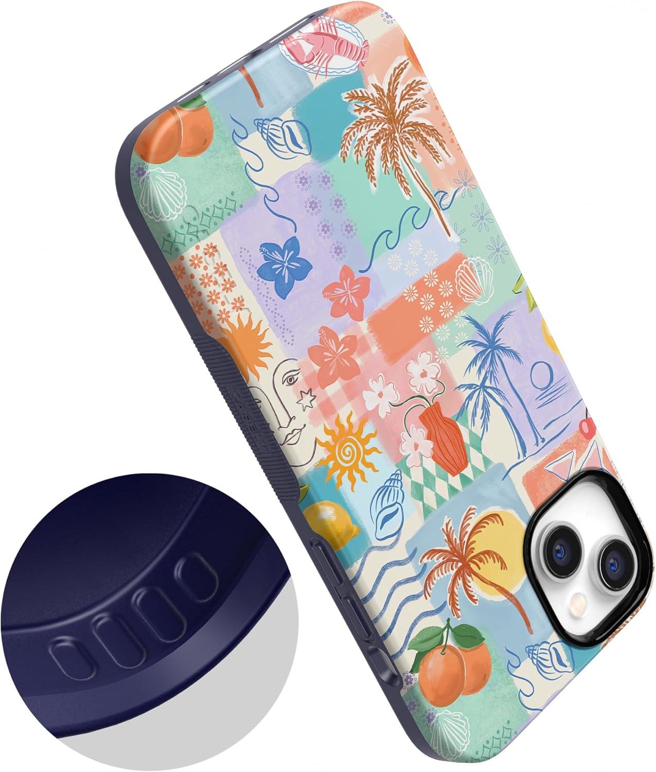 Casely iPhone 14 Plus Case | Opposites Attract | Day & Night Mountains | Bold Protective Design | Compatible with MagSafe(Tropical Heat | Beachy Collage)
