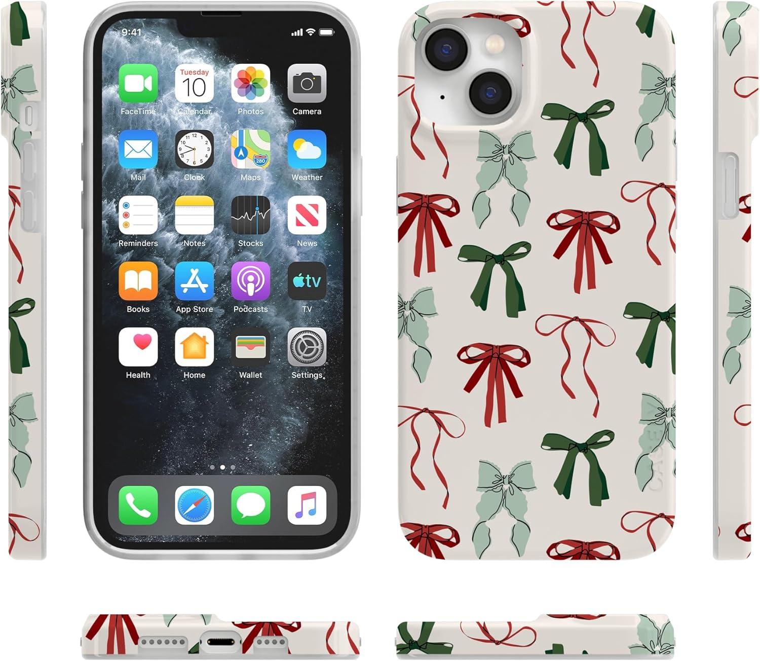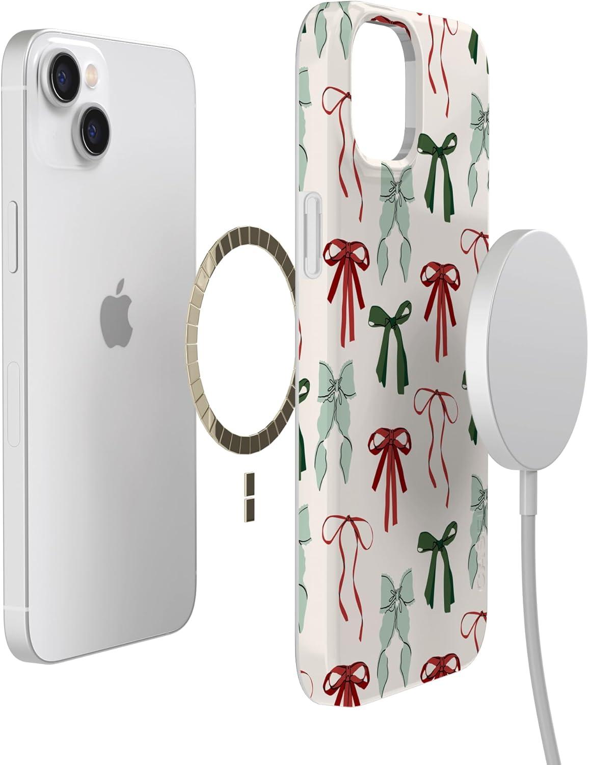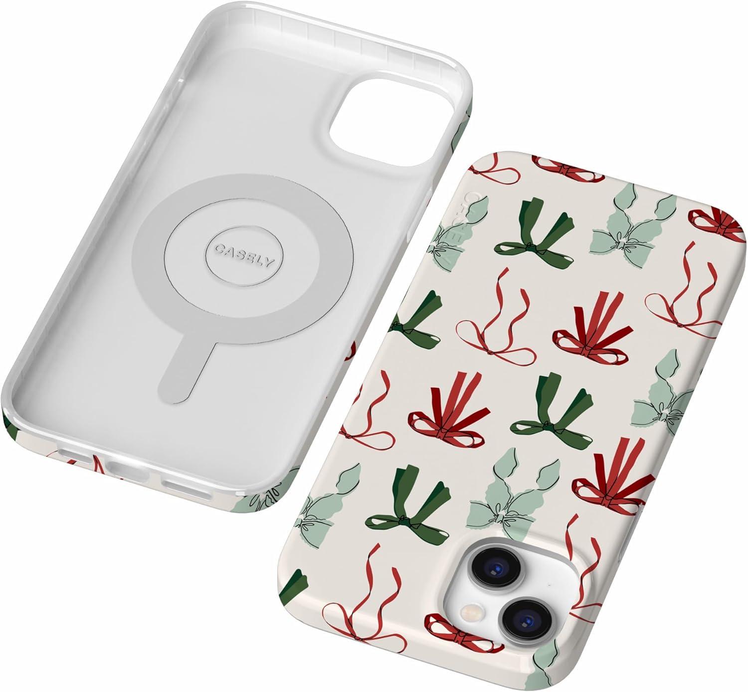 Casely iPhone 14 Plus Case | Palermo | Dippin’ Daisy’s Italian Coast | Compatible with MagSafe(Festive Girlie | Holiday Bows)