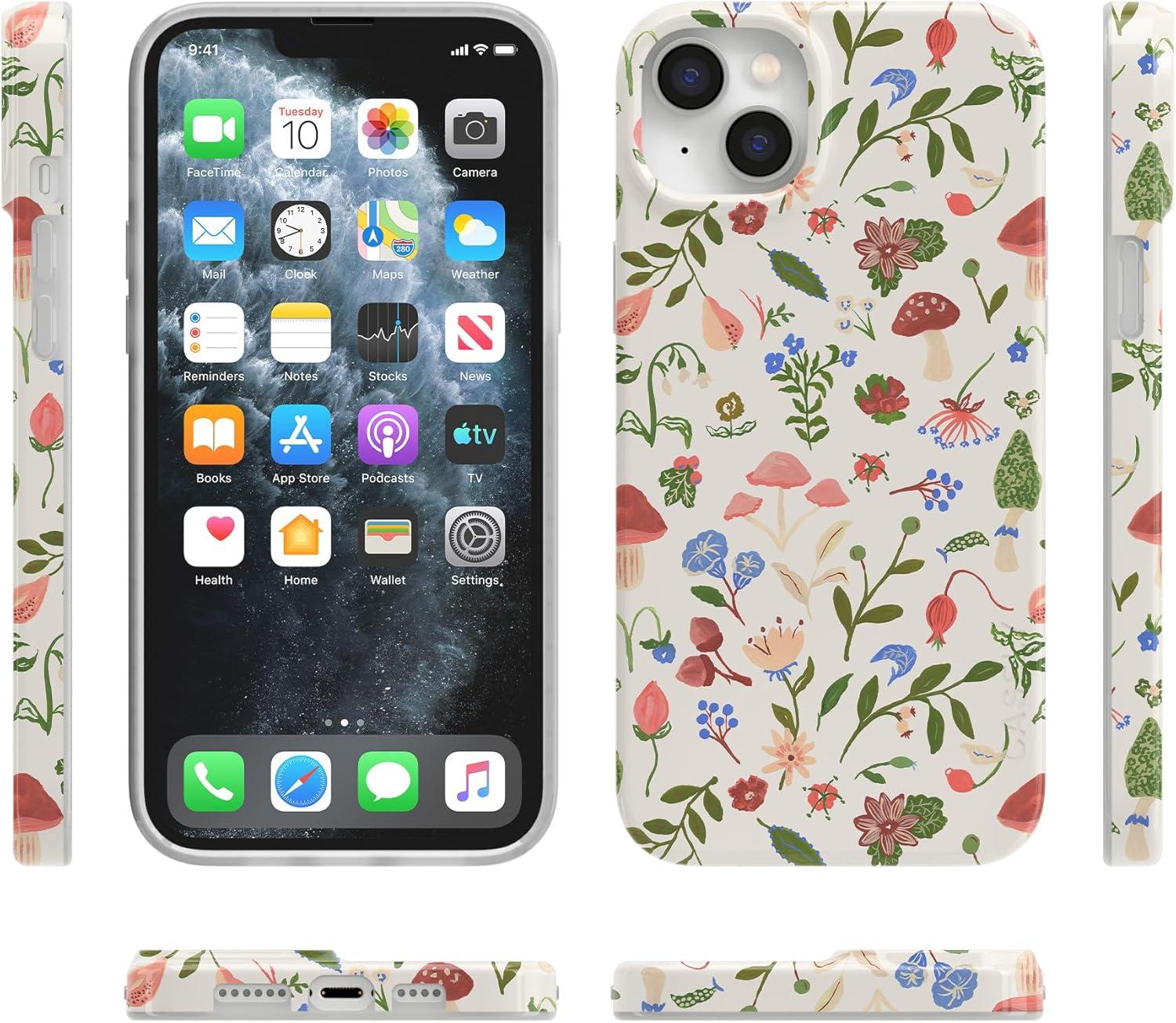 Casely iPhone 14 Plus Case | Palermo | Dippin’ Daisy’s Italian Coast | Compatible with MagSafe(Garden Party | Mushroom Floral)